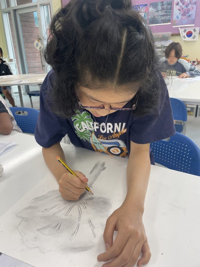 This week, we have been enjoying our special Chuseok art projects, celebrating tradition and creativity. After these holiday activities, we returned to our main topic in art—exploring the seven elements of art. So far, we have learned about light, shadow, shapes, and lines.