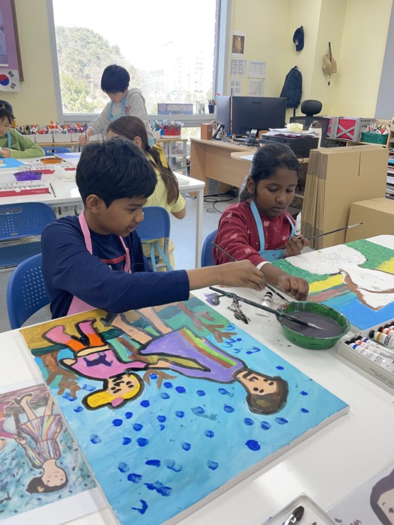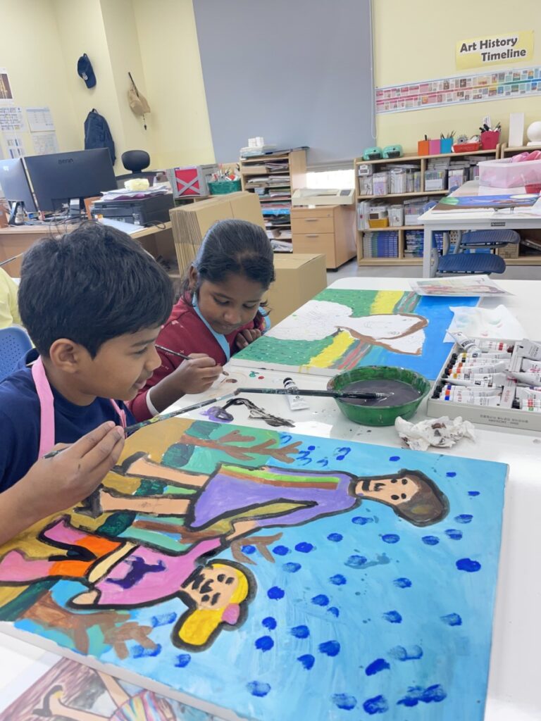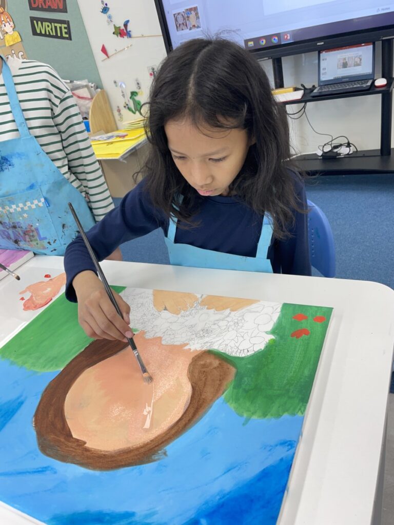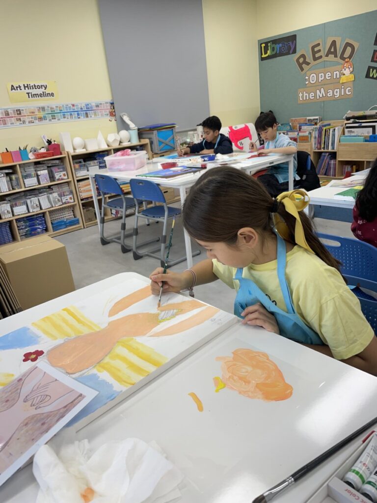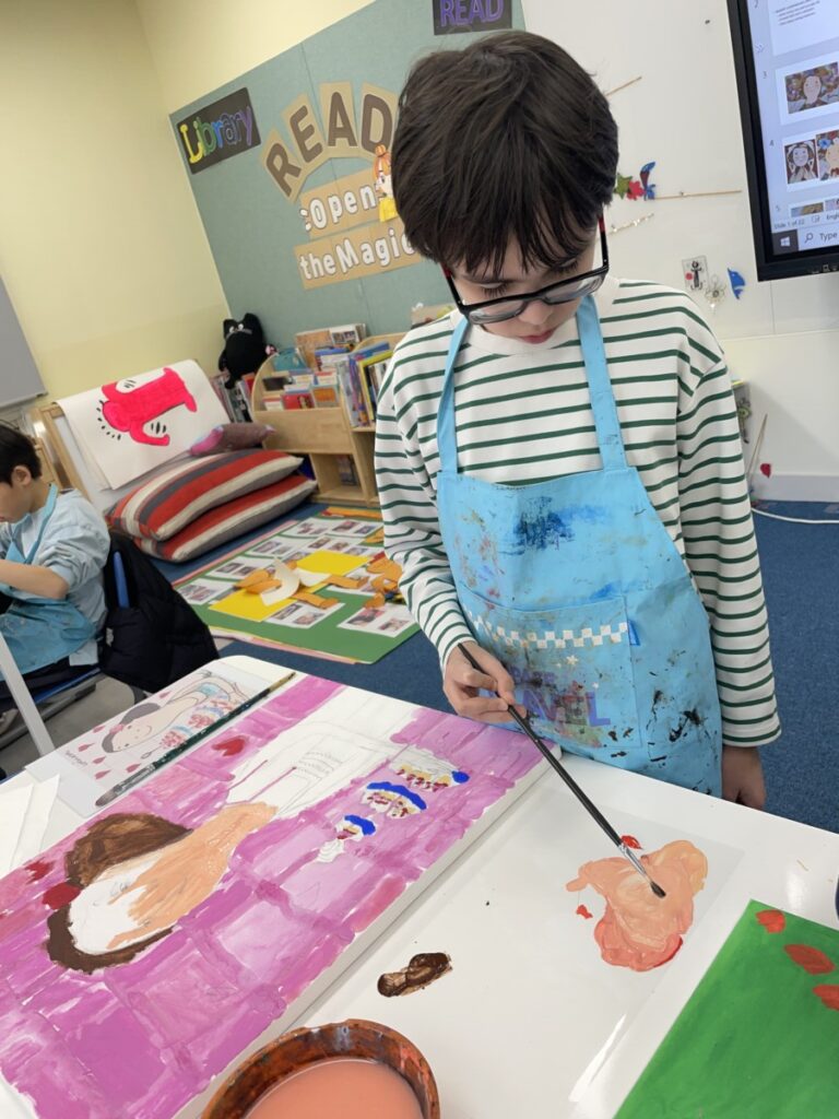 Throughout the lesson, students showed great concentration and creativity as they worked on improving their paintings and expressing their own ideas through colour and expression. All students are making wonderful progress as they bring their artworks closer to completion.