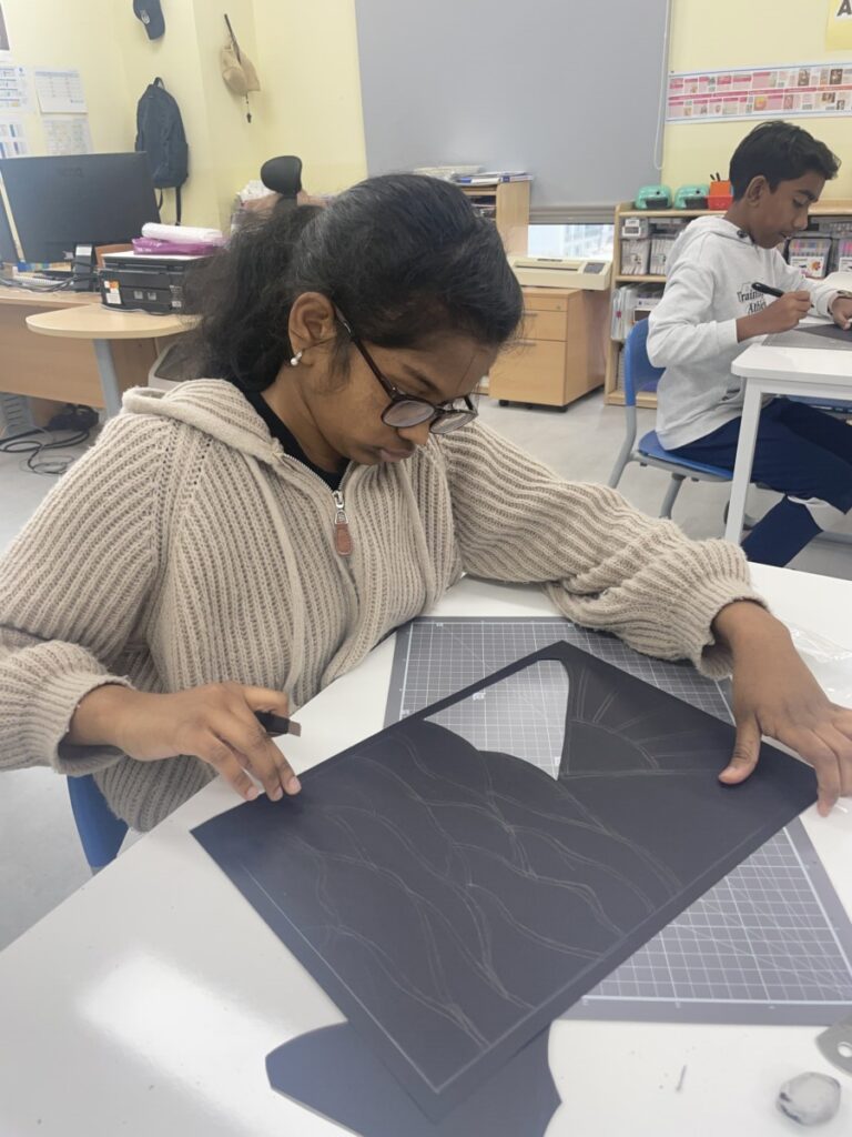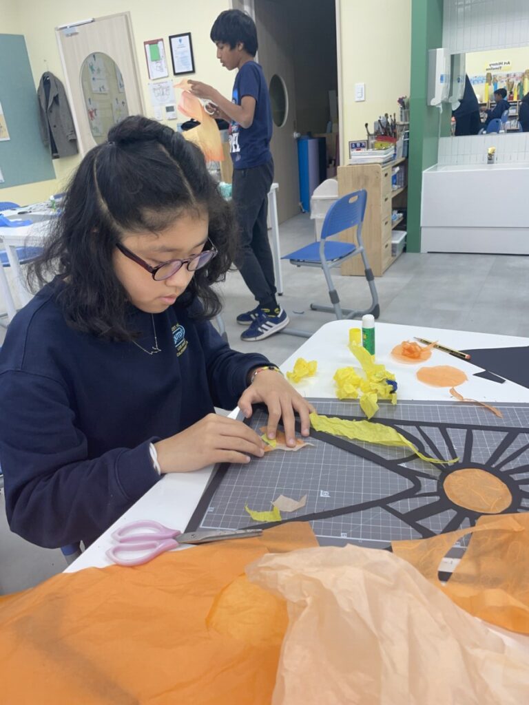 This week, students in Years 7–9 learned about stained glass, including how coloured glass is made, cut, and assembled using thin metal lines.