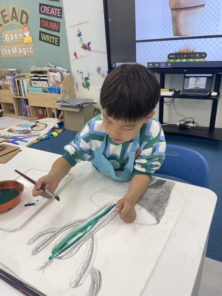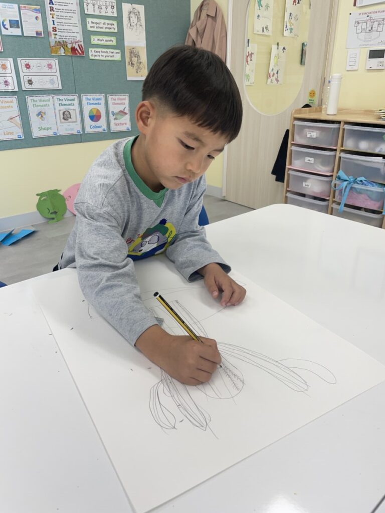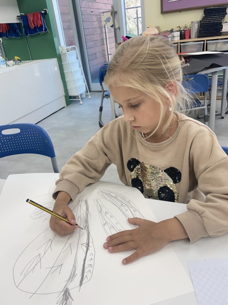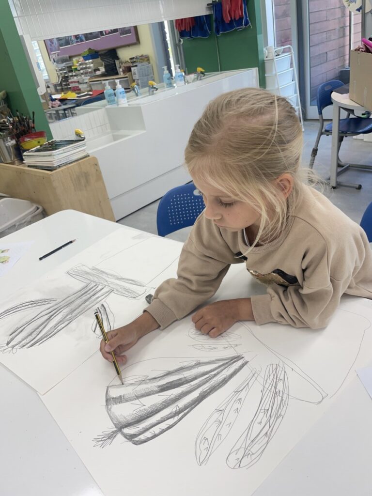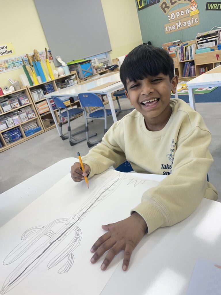 This week, our young artists worked on cactus-themed sketching. We explored where cactuses grow, how they develop, and how their body parts are structured through discussion.