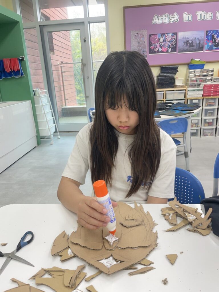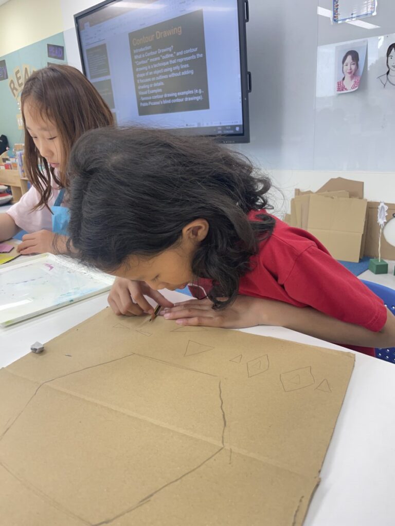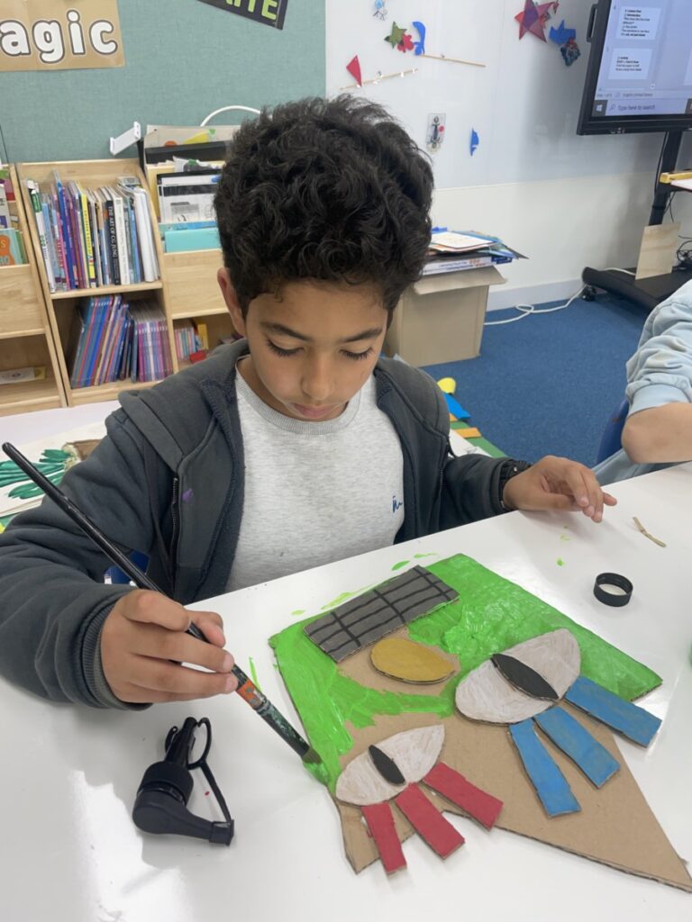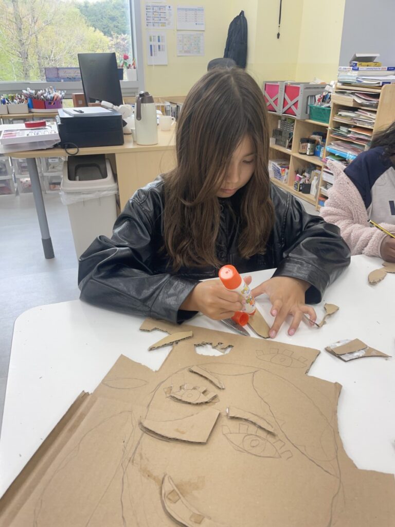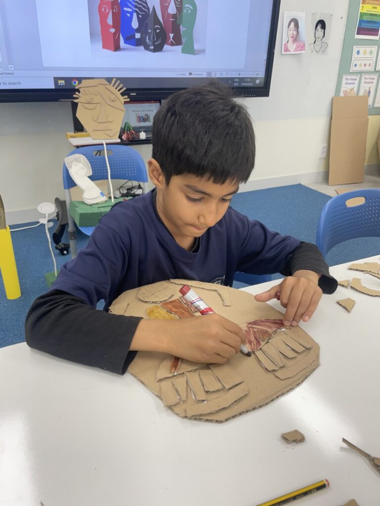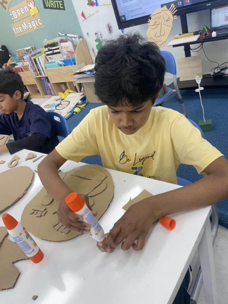 This week, our Year 5–6 students explored portrait-making inspired by Picasso’s unique artistic style. Using thick cardboard, they carefully cut and assembled facial features such as the shape of the face, eyes, nose, and mouth.