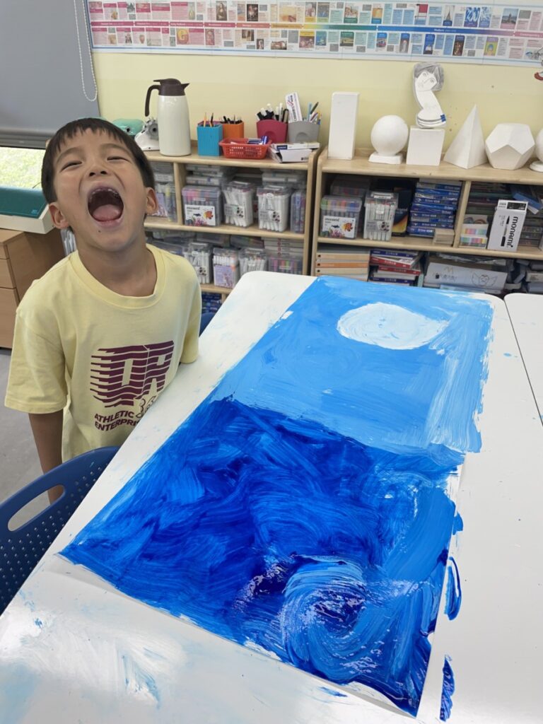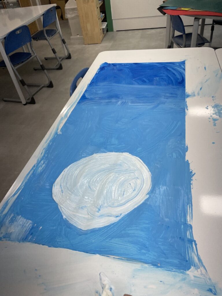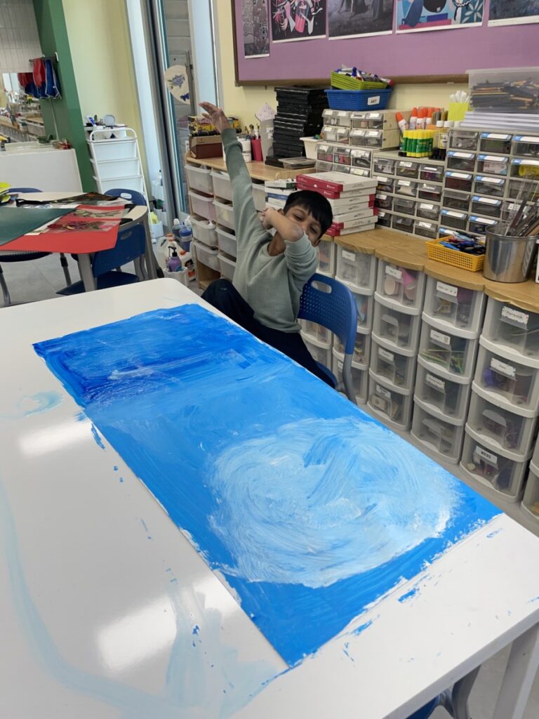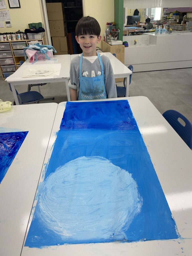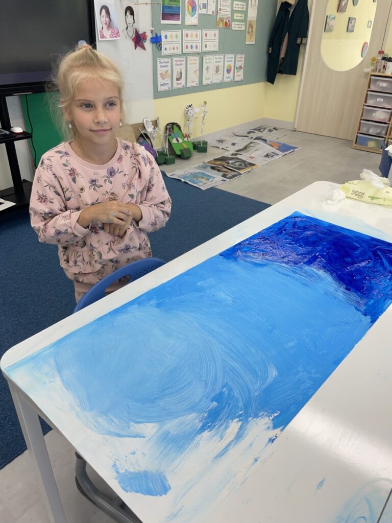 This week, our students focused on building rich blue backgrounds for their artwork, exploring how to express different tones and depth using a single colour. Through layering and blending, they discovered how even similar shades of blue can create a wide range of moods and visual effects.