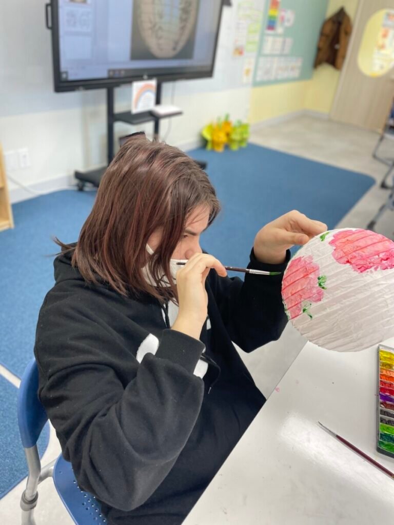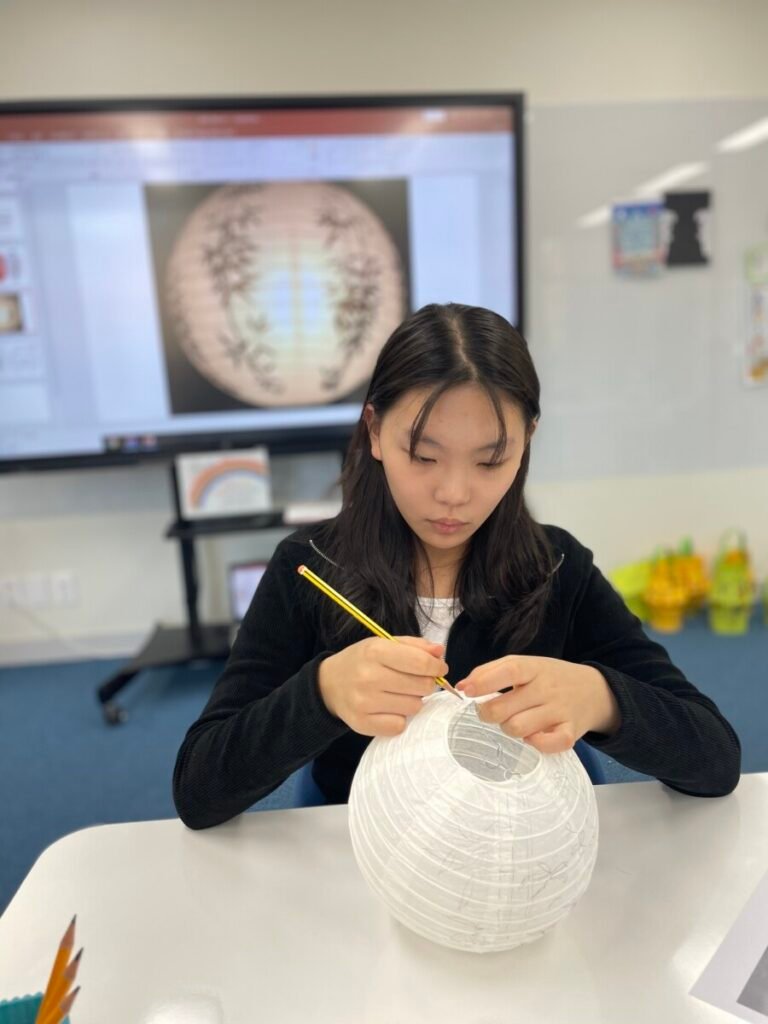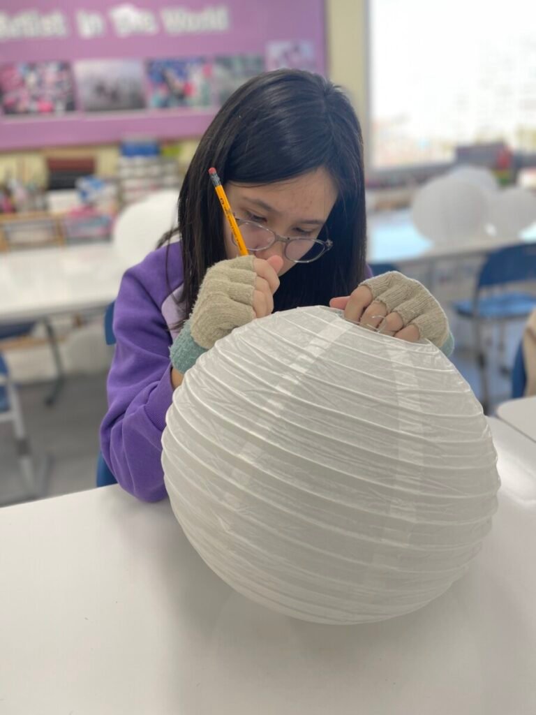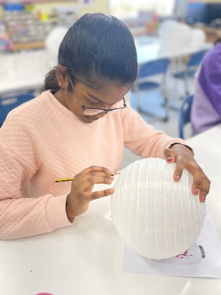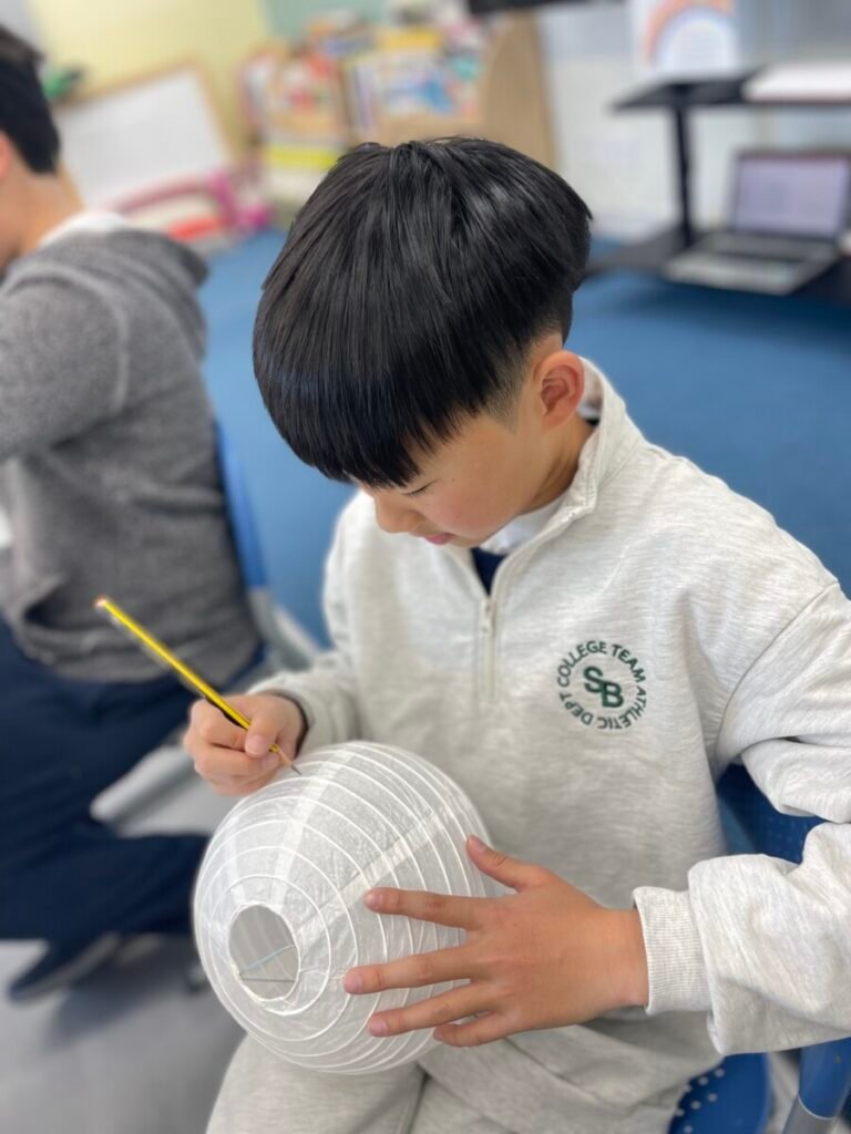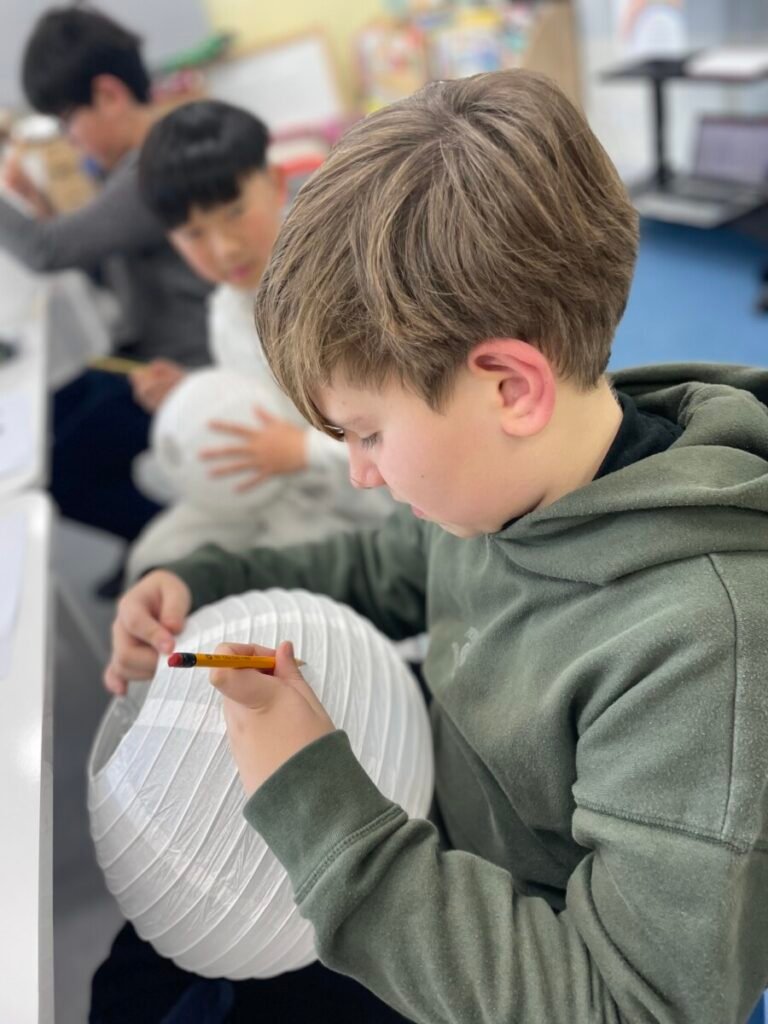 This week, I introduced the students to Korean traditions and the symbolic meanings of bamboo, peony, and plum blossoms. We explored how these elements reflect cultural values and are often featured in traditional art. The lesson focused on teaching art techniques, such as sketching lightly on a 3D lantern surface and using paint to create vibrant designs. Students were encouraged to express their individual creativity while working within the framework of these traditional themes. This lesson provided them with a deeper understanding of Korean Lunar New Year and its rich cultural traditions.