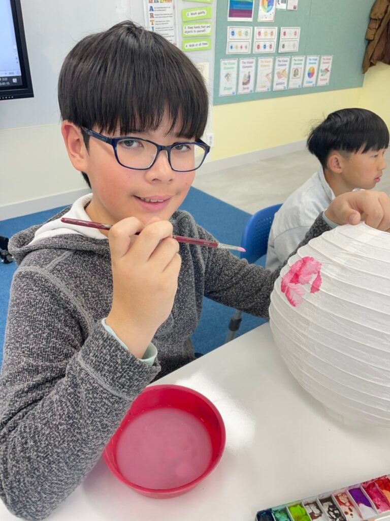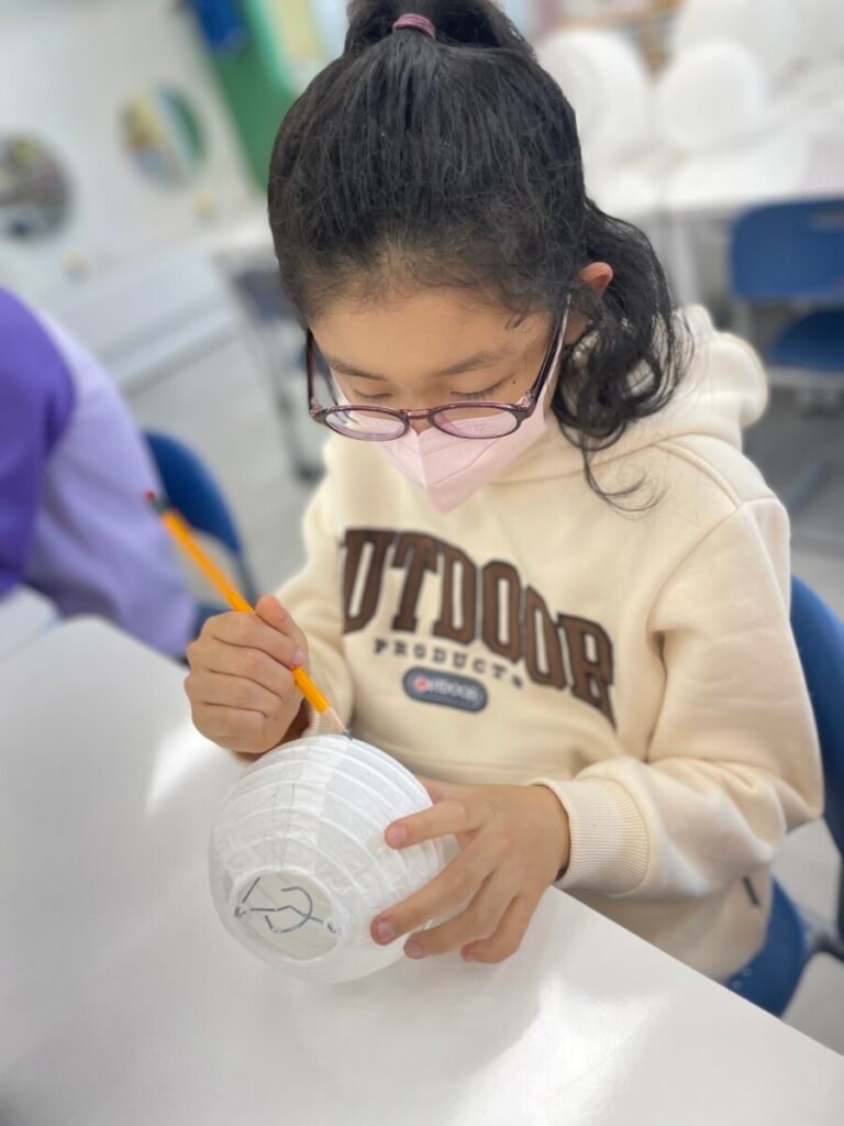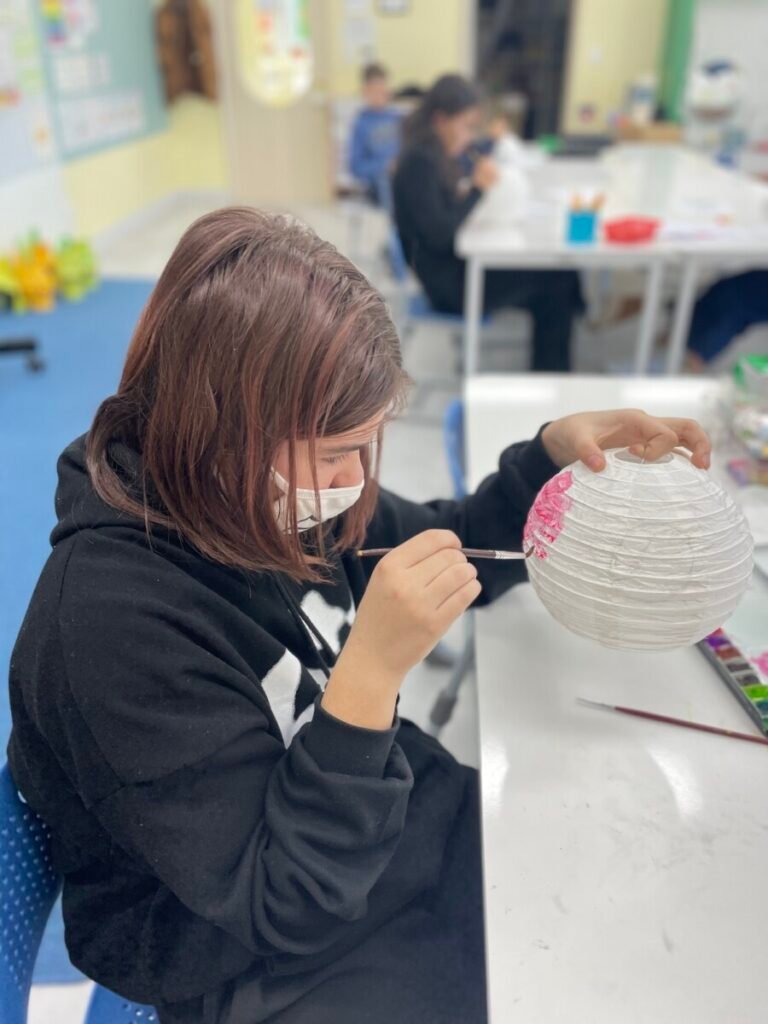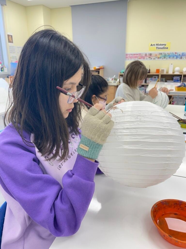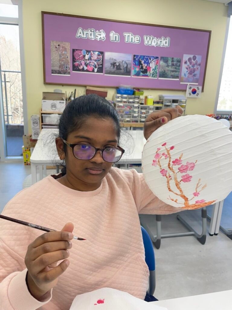 This week, I introduced the students to Korean traditions and the symbolic meanings of bamboo, peony, and plum blossoms. We explored how these elements reflect cultural values and are often featured in traditional art. The lesson focused on teaching art techniques, such as sketching lightly on a 3D lantern surface and using paint to create vibrant designs. Students were encouraged to express their individual creativity while working within the framework of these traditional themes. This lesson provided them with a deeper understanding of Korean Lunar New Year and its rich cultural traditions.