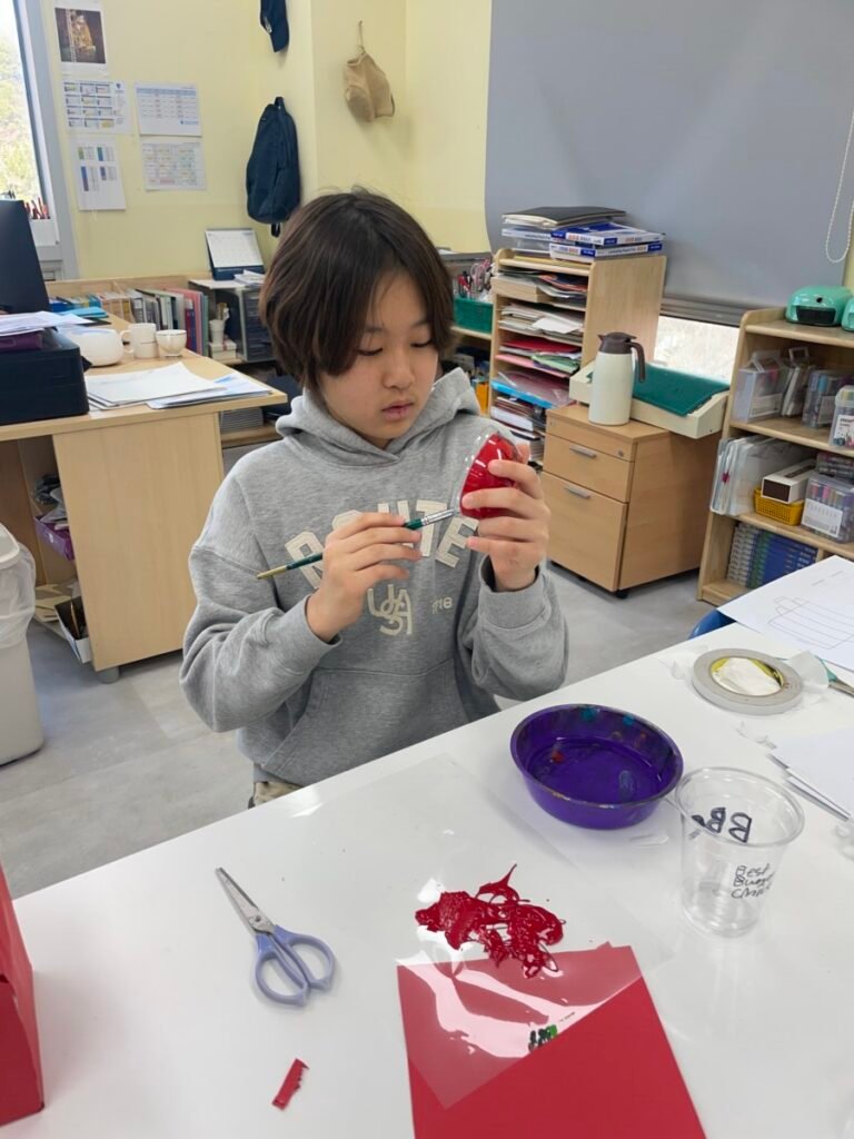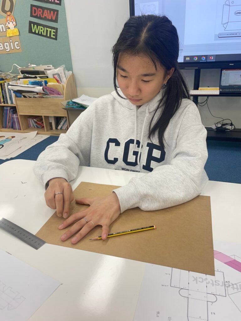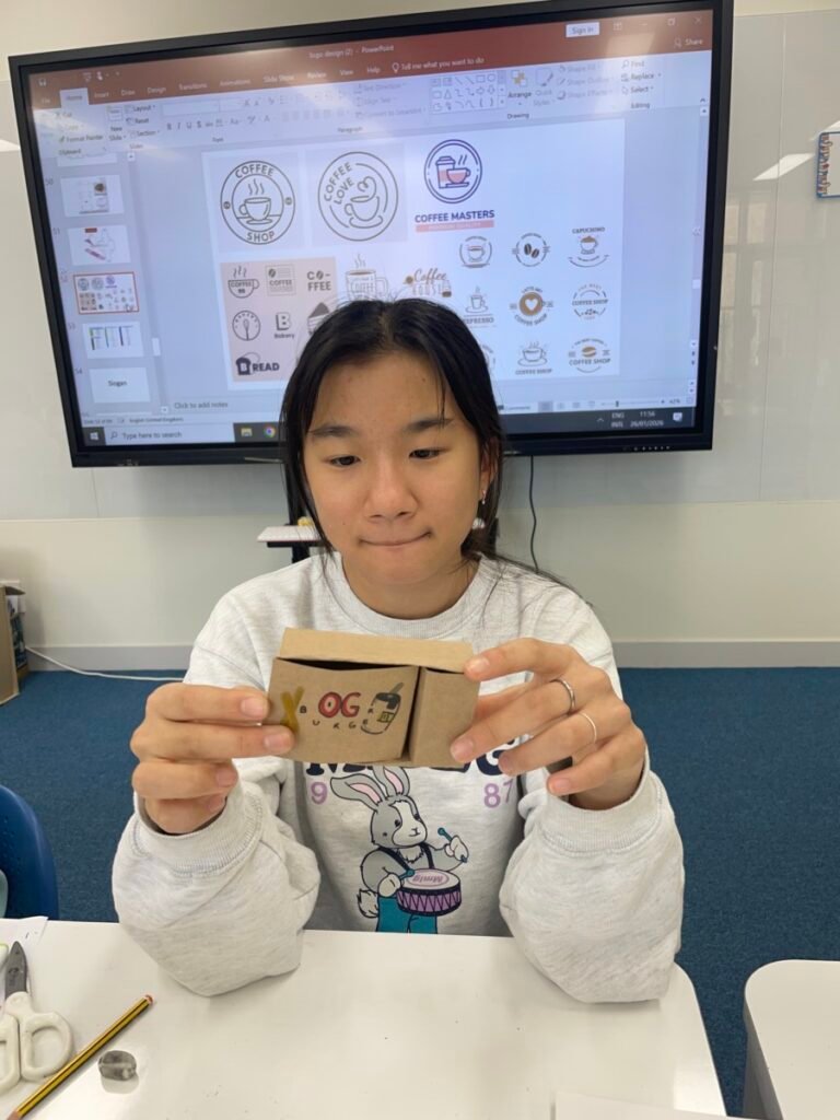 This week, Year 7–9 students continued working on their hamburger packaging project, further developing their burger brand designs. They refined their logos, brand names, slogans, and typography, focusing on how layout, colour, and lettering work together to communicate a clear brand identity on the hamburger box.