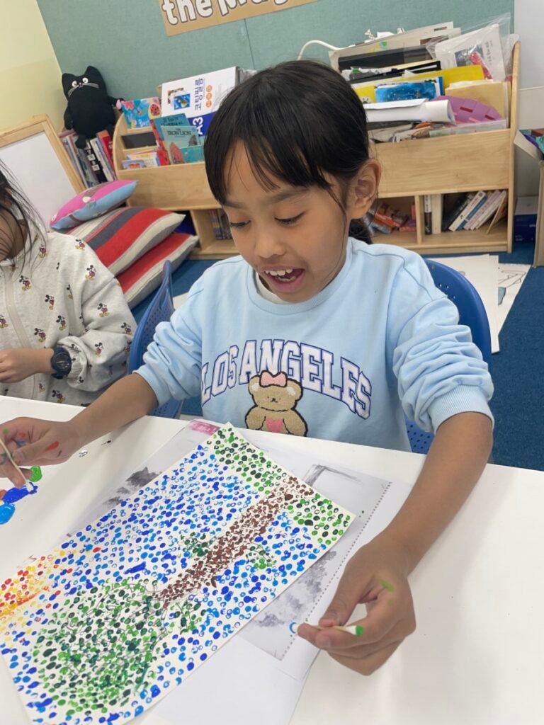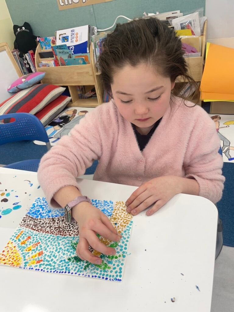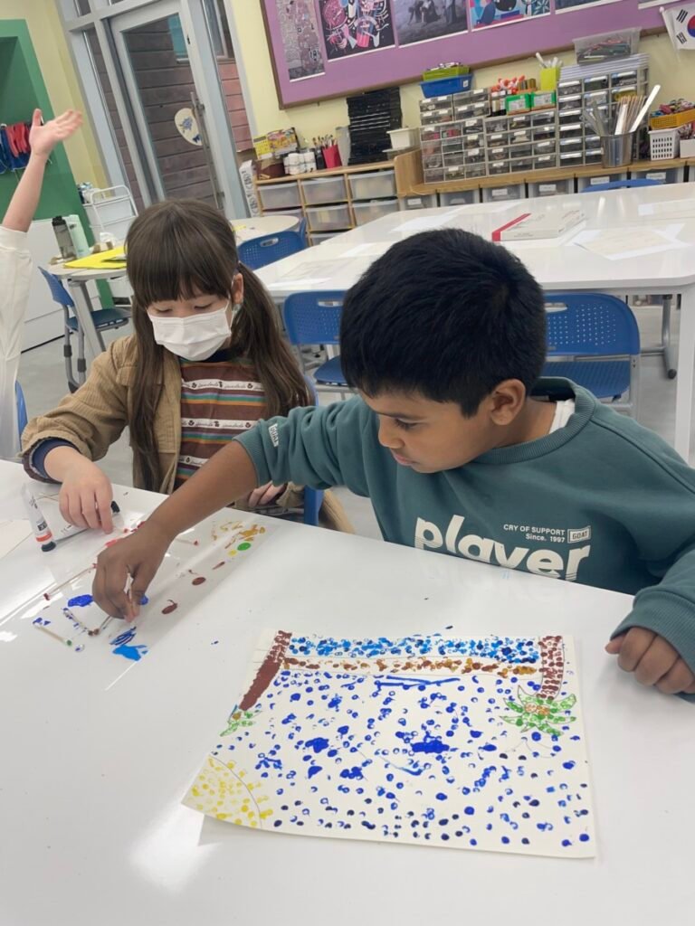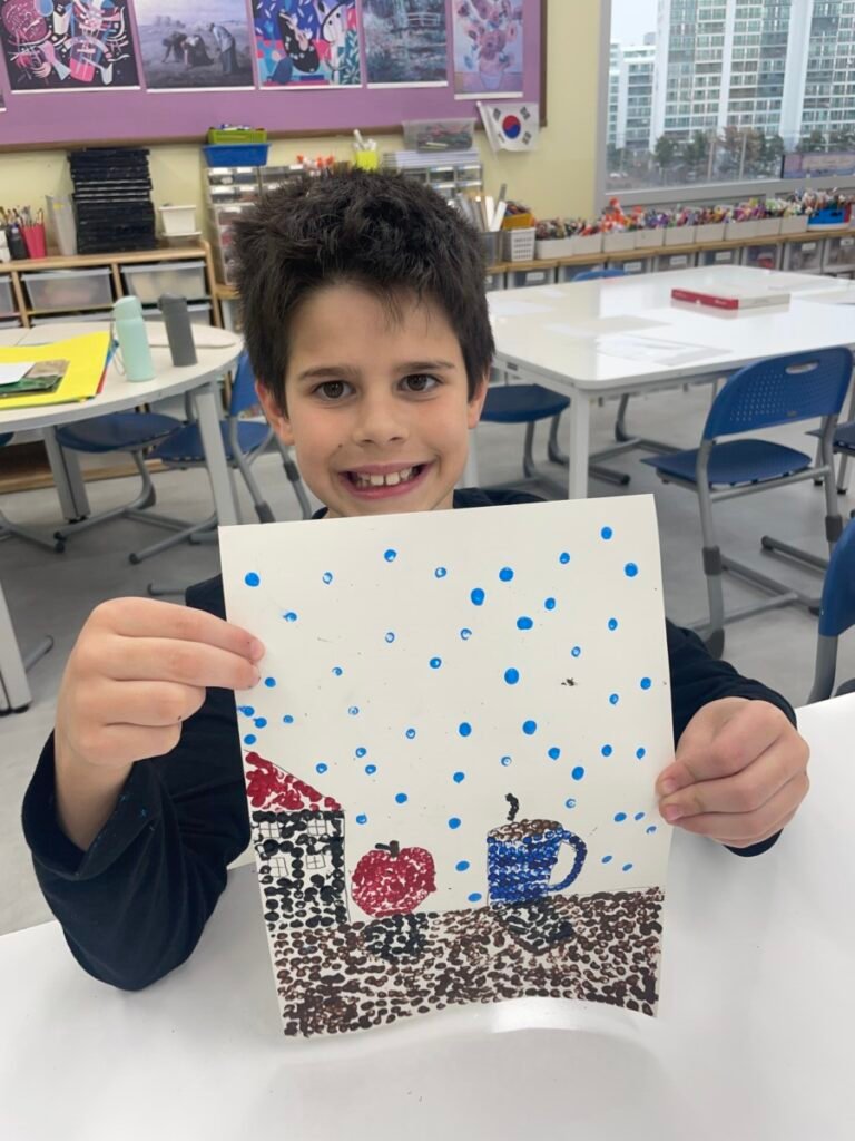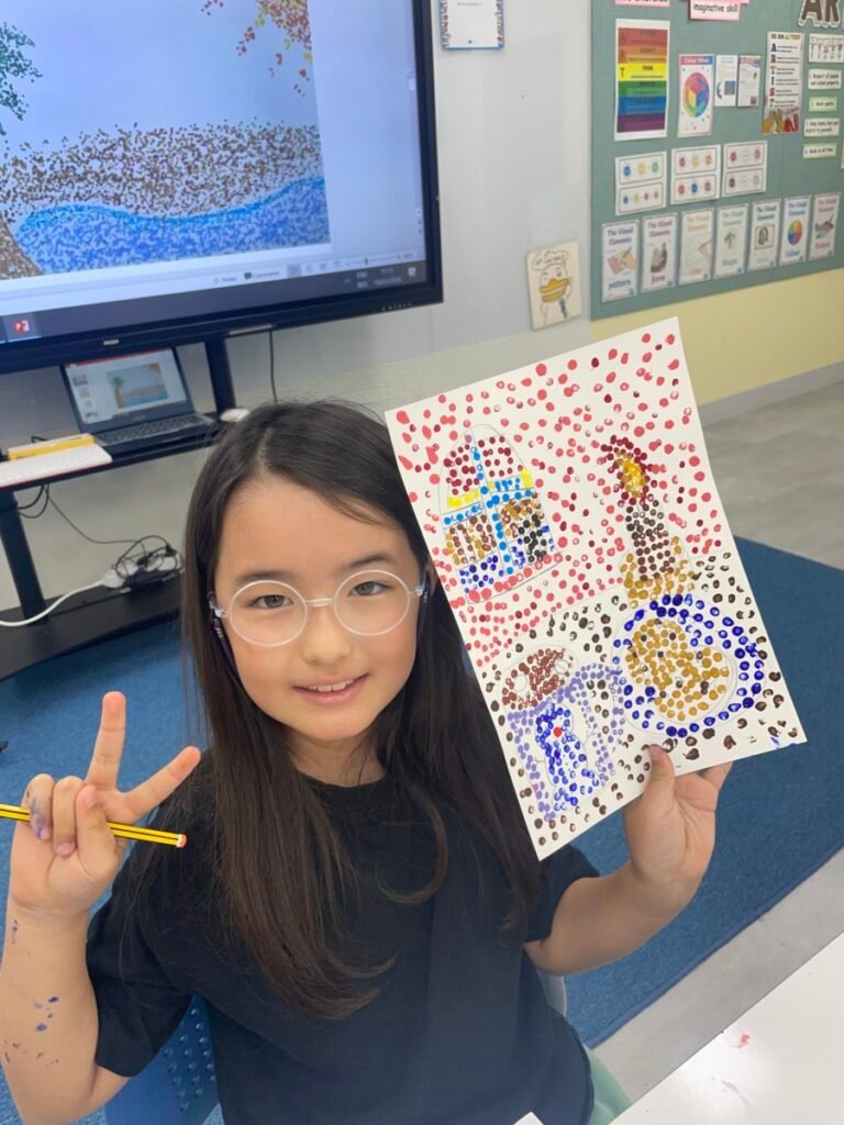 This week, students completed their Pointillism artworks inspired by Post-Impressionist artist Georges Seurat. By patiently applying dots of colour, they were able to see how individual marks come together to form images and visual effects.