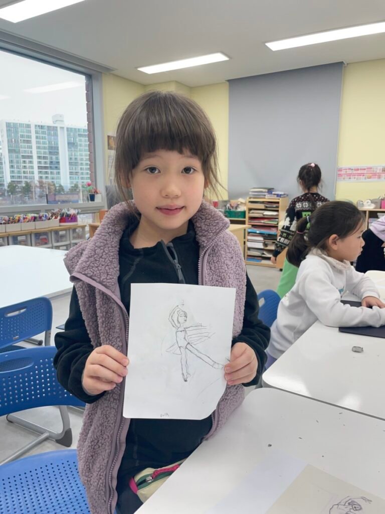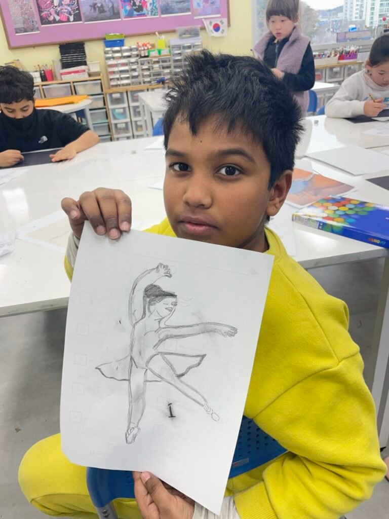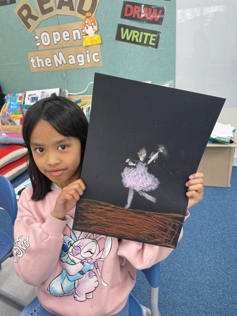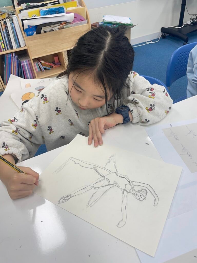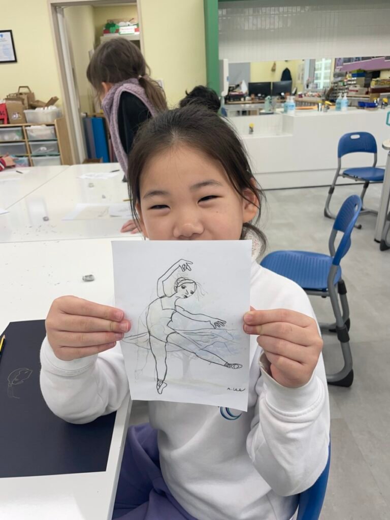 In the final stage, students decorated their ballerinas using coloured pencils or markers, and added tutus and headpieces made from coloured paper and tissue paper. Through this activity, students developed their observation and expressive skills while creatively exploring how movement can be represented in art.
