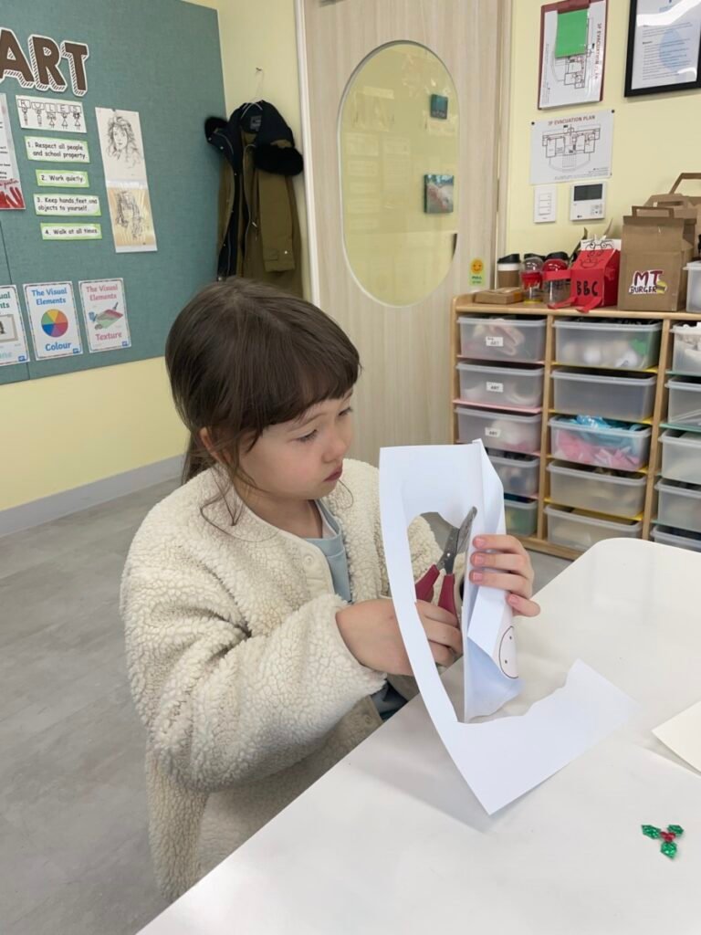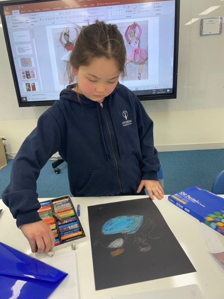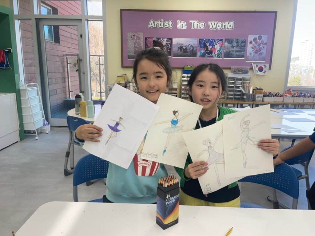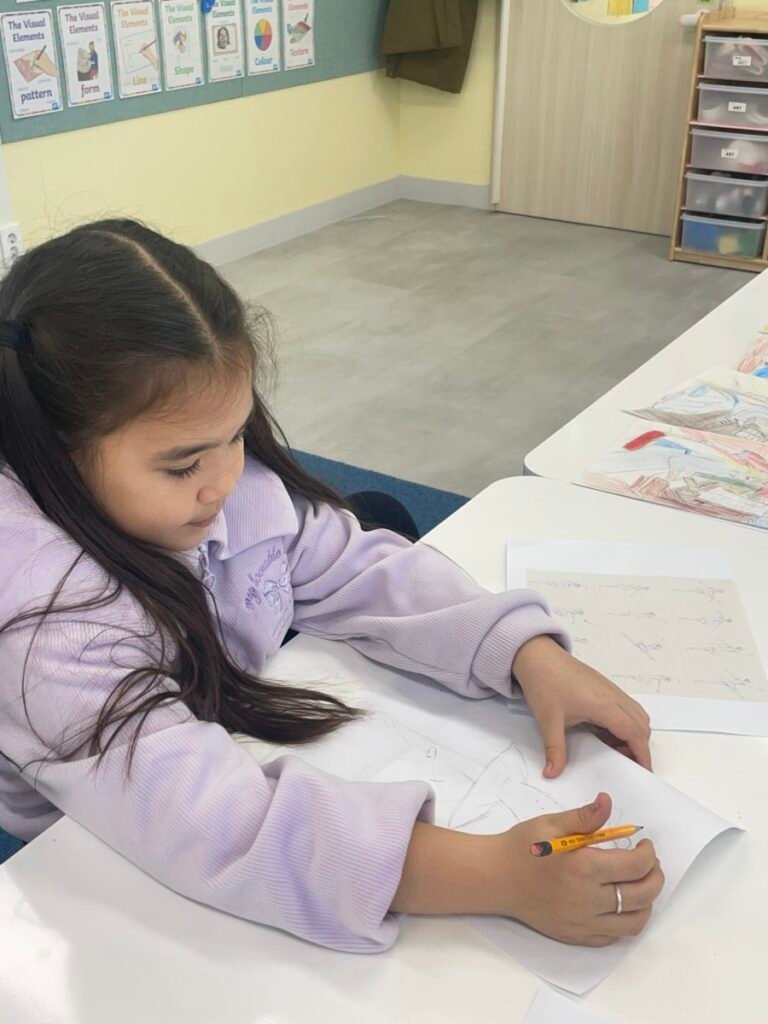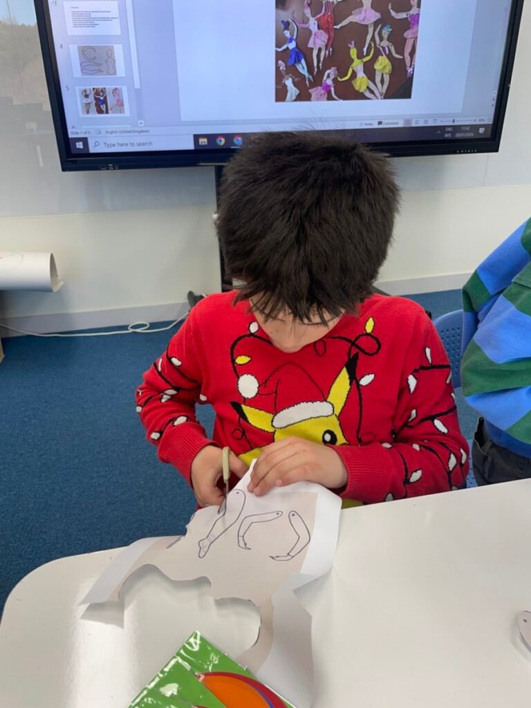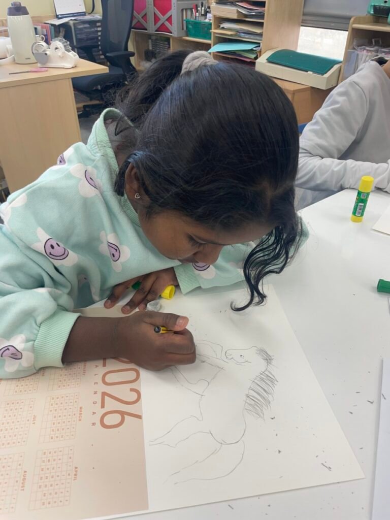 In the final stage, students decorated their ballerinas using coloured pencils or markers, and added tutus and headpieces made from coloured paper and tissue paper. Through this activity, students developed their observation and expressive skills while creatively exploring how movement can be represented in art.