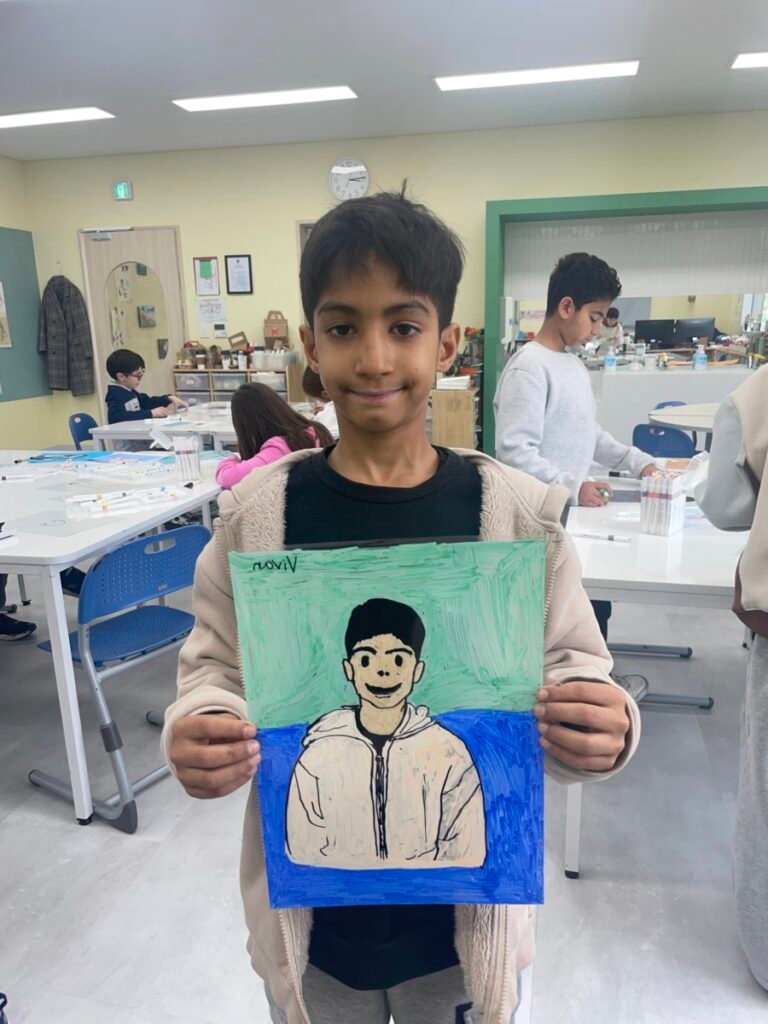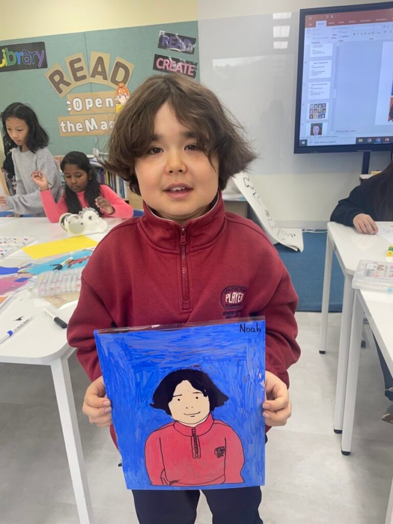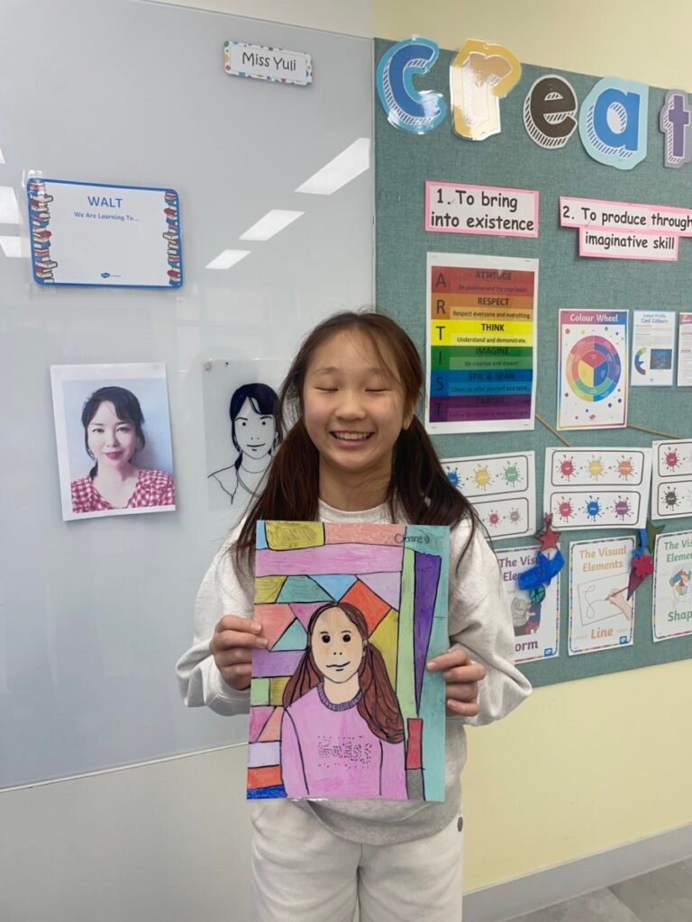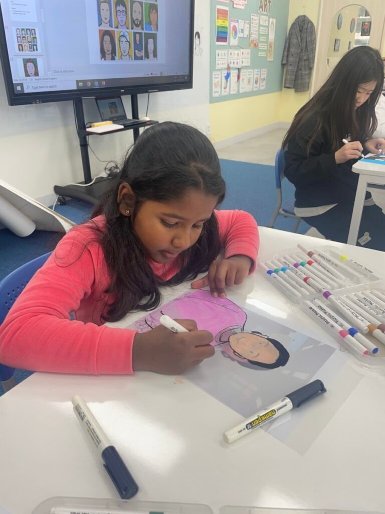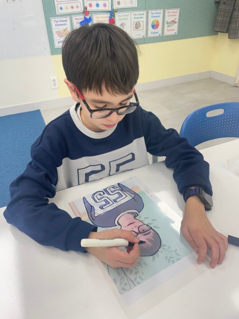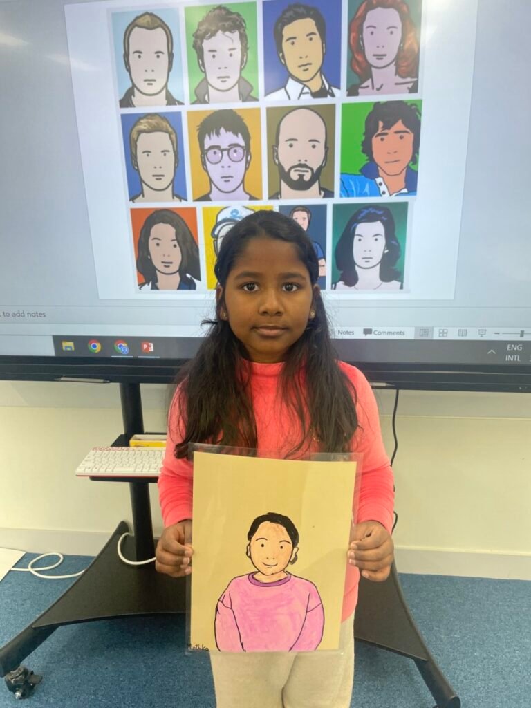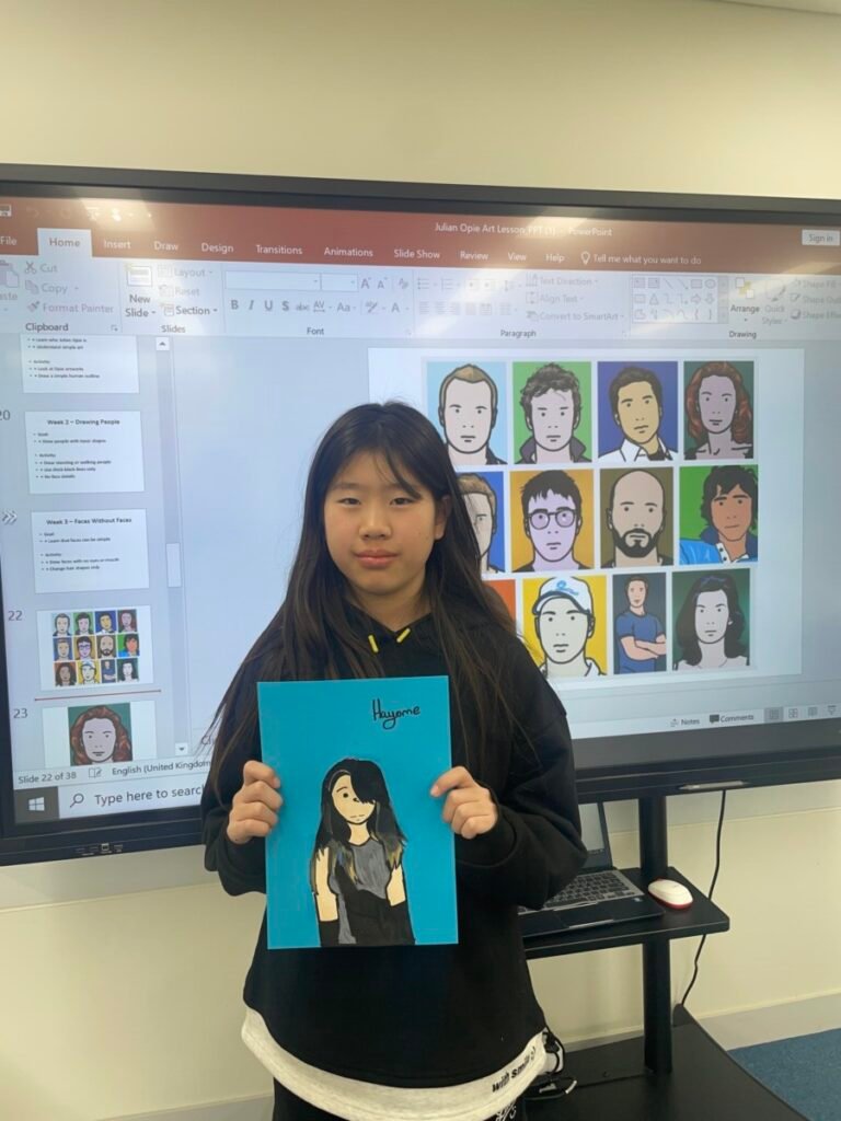 Through this activity, students developed their skills in observation, visual simplification, and personal expression, while gaining a deeper understanding of contemporary portraiture and Julian Opie’s artistic style.