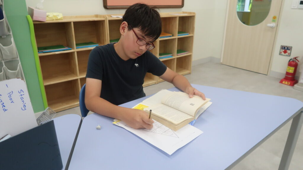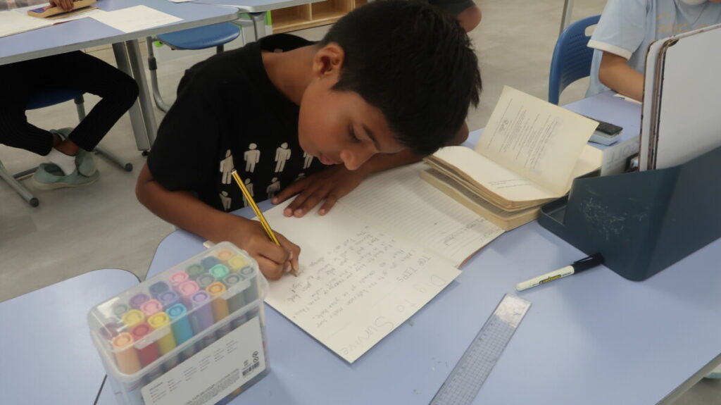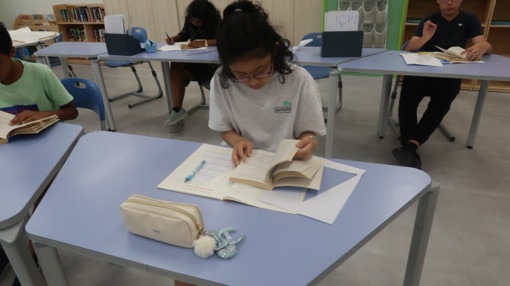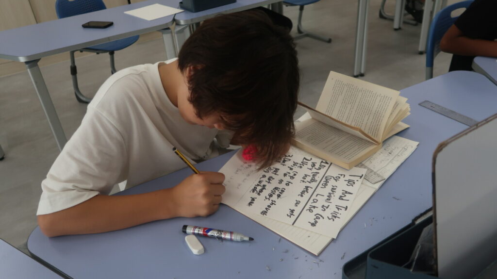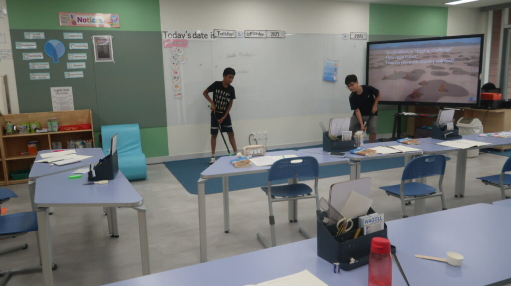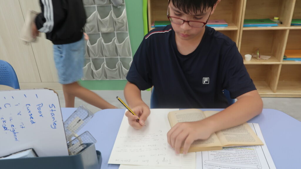 In our recent Literacy lessons, for our unit on Holes by Louis Sachar, the students created their own “Camp Green Lake Survival Guides” based on Chapter 7, thinking about the skills and attitudes needed to cope in such a harsh environment. To help them think about how hard it would be the students roleplayed digging a hole. Then they explored how Stanley and Zero’s friendship begins to grow, discussing themes of isolation and connection. Finally, they examined the “fossil scene,” building a Camp Green Lake Power Pyramid to show who holds influence, and debated whether it was fair for Stanley to give the fossil to X-Ray, linking their ideas to fairness and survival in real life.
