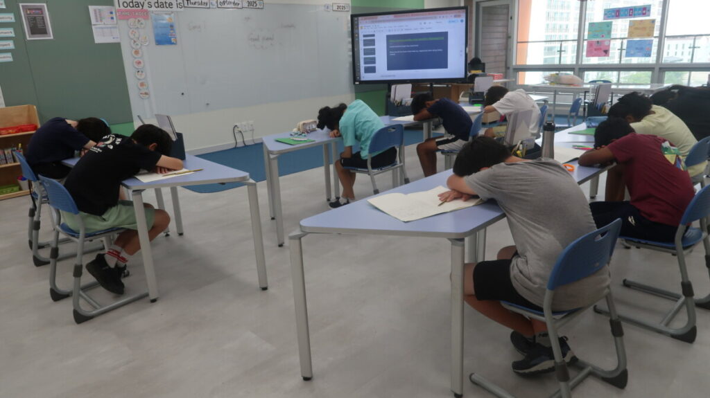 In our IMYC lessons focusing on Health & Wellbeing this week, our middle school students explored mindful listening and mindful seeing as part of our Brainwave unit. In the mindful listening lesson, they practised giving their full attention to different music, noticing how this can affect focus, emotions, and even memory. In the mindful seeing lesson, students learned about how the brain filters what we notice and practised paying closer attention to details through completing ‘I see, I notice, I wonder. Both activities helped them understand how mindfulness strengthens the brain’s ability to concentrate and manage stress.