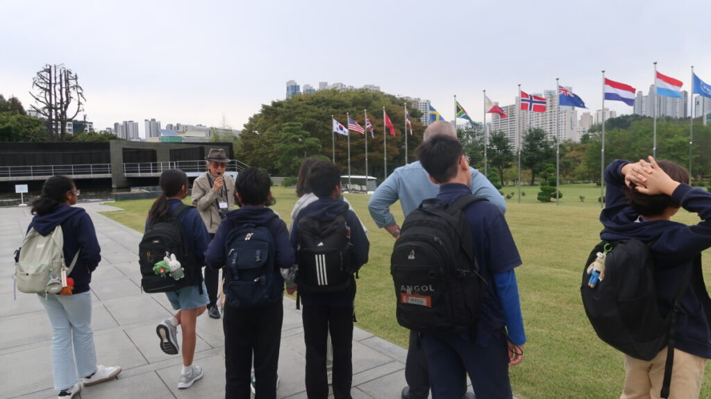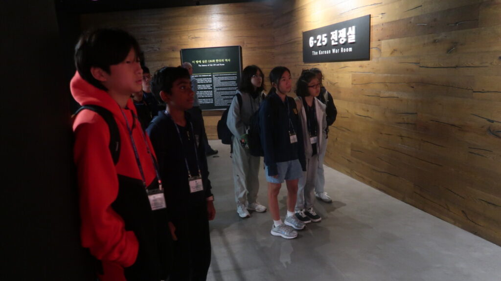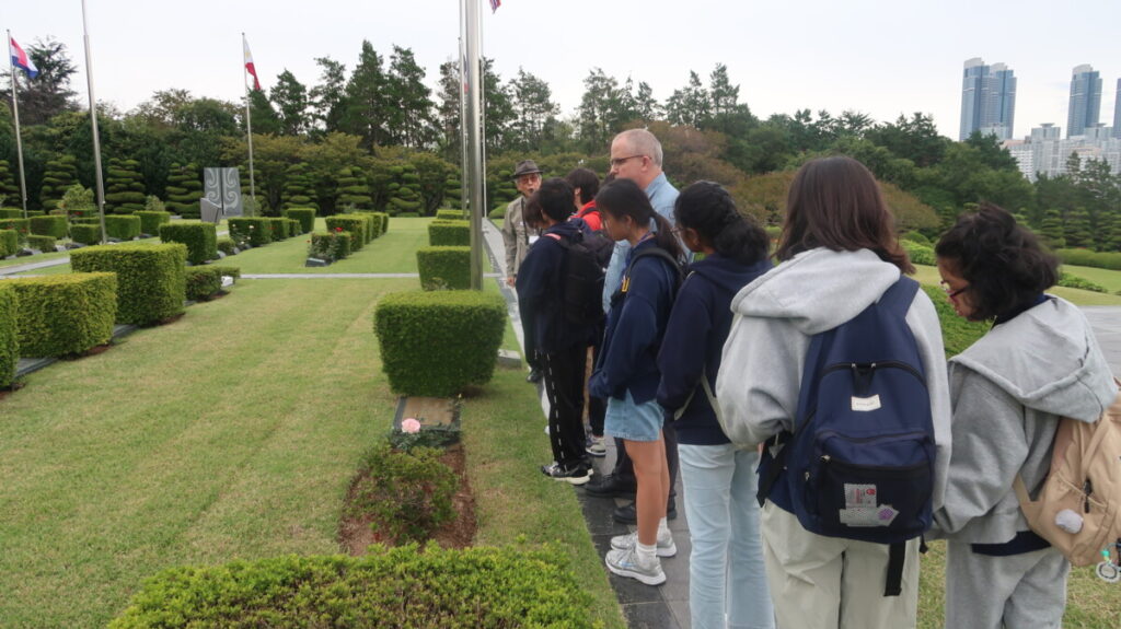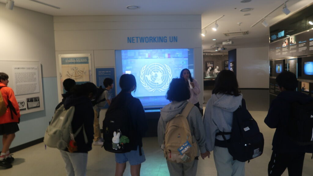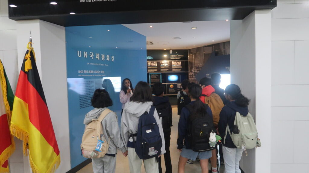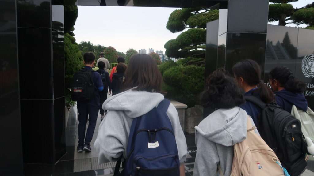 This week, students visited the United Nations Peace Memorial Hall and the UN Memorial Cemetery in Busan to deepen their understanding of responsibility and remembrance. During the guided tour, they learned about the role of the UN and the 22 nations that supported South Korea during the Korean War. Students explored the stories of soldiers who served and reflected on how the sacrifices made in the past continue to shape peace and responsibility today.