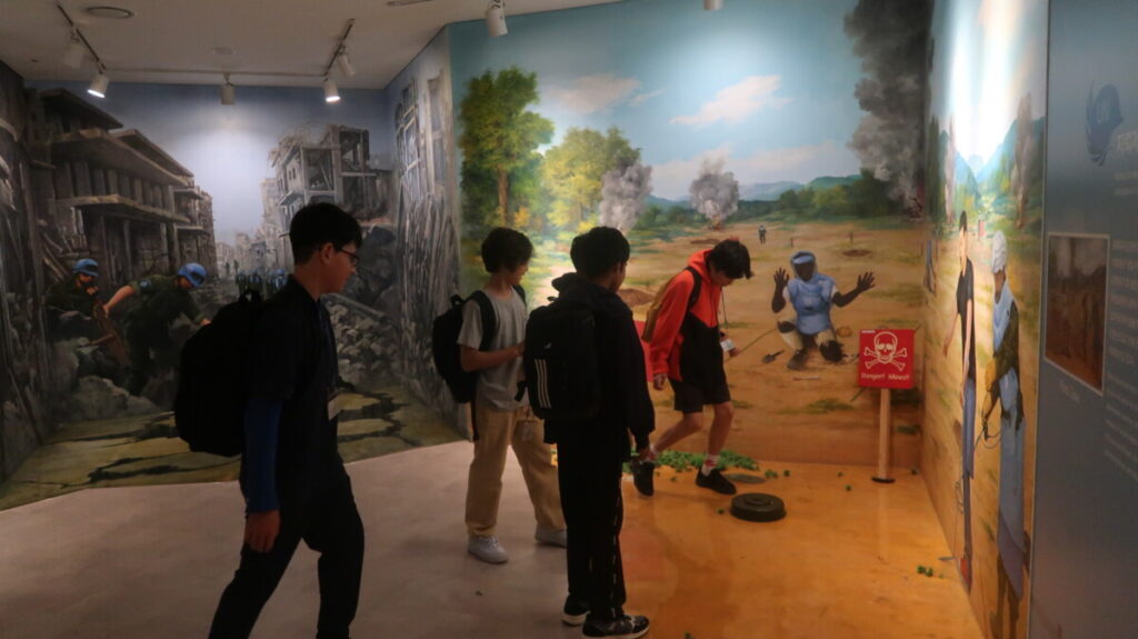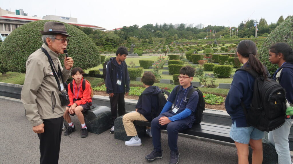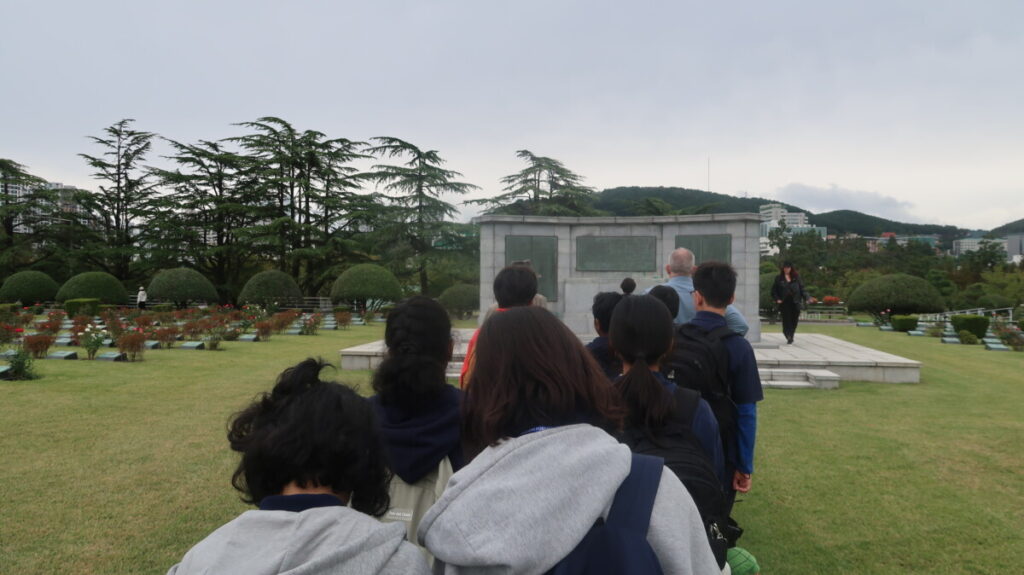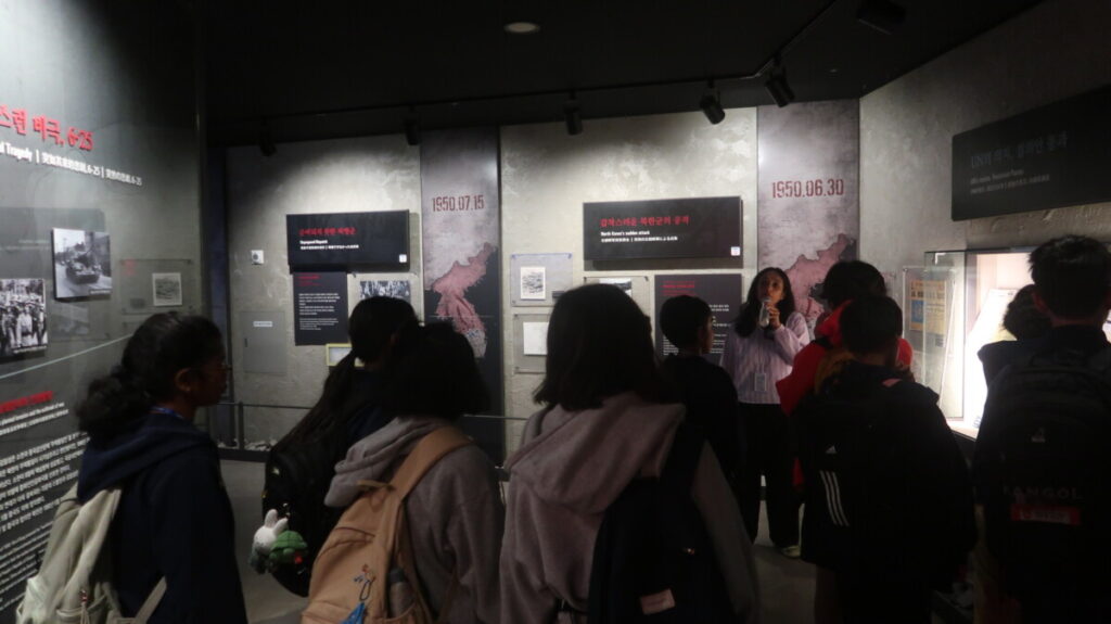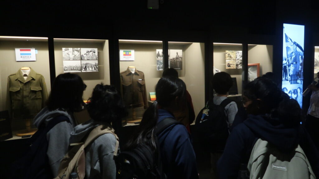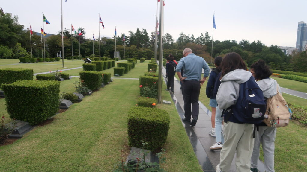 This week, students visited the United Nations Peace Memorial Hall and the UN Memorial Cemetery in Busan to deepen their understanding of responsibility and remembrance. During the guided tour, they learned about the role of the UN and the 22 nations that supported South Korea during the Korean War. Students explored the stories of soldiers who served and reflected on how the sacrifices made in the past continue to shape peace and responsibility today.