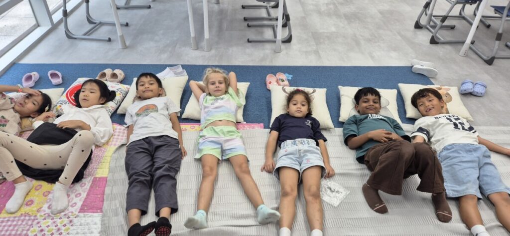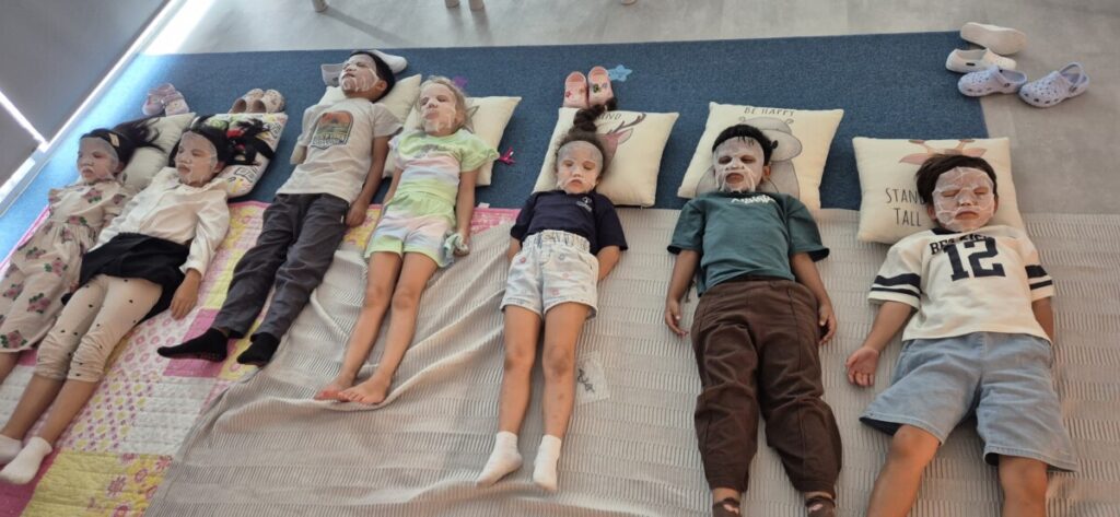 - Had a relaxing class spa session with calm music, facemasks, and even a little foot massage 🧖 – the children experienced what “calm” feels like and how it helps our brains learn
