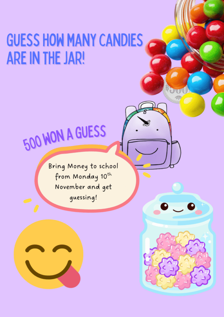Each guess costs 500 won. The children are very excited and everyone wants to win the Backpack Bear!