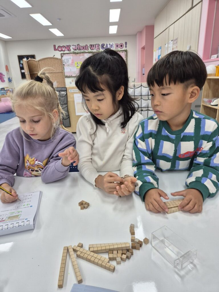 The children are becoming more confident using practical equipment and number lines to show their understanding of addition and subtraction.