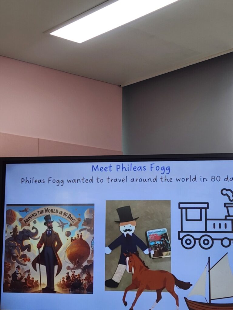 In IPC, we have been learning about parts of stories and have read the story of Phileas Fogg: Around the world in 80 days. The children enjoyed using globes to find the countries that Fogg travelled to. They made little postcards with facts about each country too.