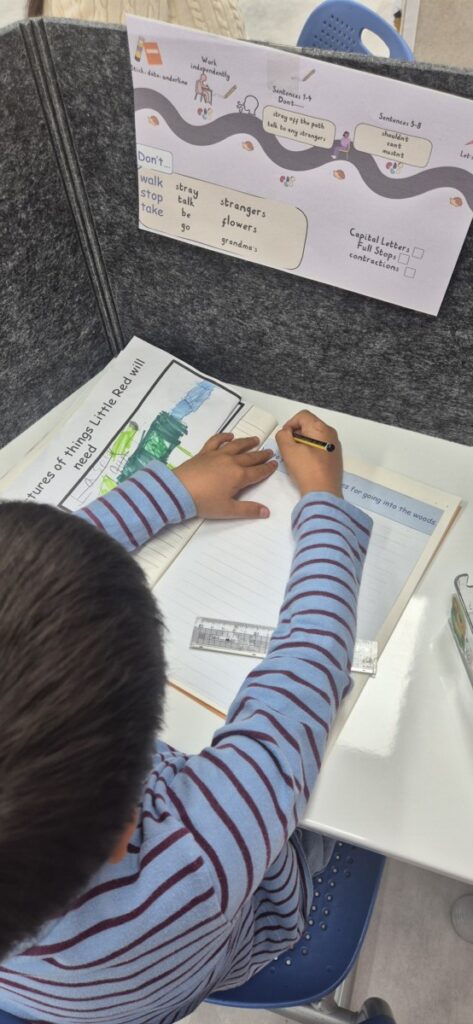 In Literacy, we continued reading The Last Wolf and had fun learning about contractions and how we can use them to give instructions. The children wrote a list using contractions of what not to do in the forest when trying to catch a wolf (shouldn’t, can’t, don’t). We made our own little contraction cards to help us remember them. I will send them home tonight, as the homework is related to this too. The children started preparing to write a short poem this morning about being in the woods, using verbs to describe how they moved (marching, strolling, jumping, swinging). Next week, we will develop this further, and I look forward to seeing the final pieces!
