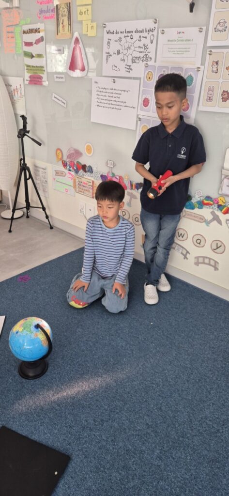 In IPC, we had our artist caps on and spent time exploring how we can use light in various ways. We took pictures, made glittery fireworks, and created pastel and watercolour paintings. Yesterday, we looked at day and night and used our globes and flashlights to explore where it is day and night and why this happens. It is a fun and exciting unit, and the children are really enjoying it.