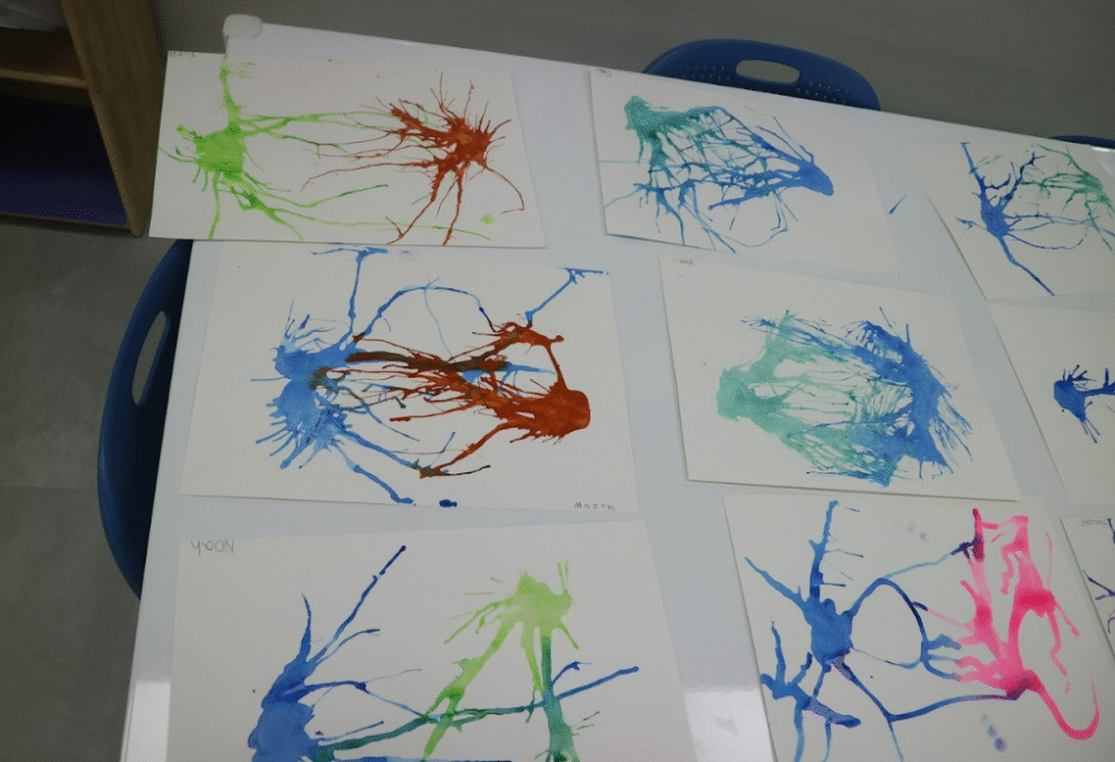 In IPC this week, the students created striking neuron pictures by blowing paint through straws. This helped them visualise how neurons branch out and connect with other neurons to send signals around the brain. Next week, we will label these artworks to build a fabulous classroom display. We also explored different memory techniques, including using storytelling to recall a sequence, mnemonics to help remember lists, and action associations to learn something new, such as counting to five in Japanese with Haruomi’s help. The children were excited to try out these strategies and see which ones worked best for them. Next week, we will be examining the parts of the brain involved in storing memory and discussing what it means to have either a fixed mindset or a growth mindset.