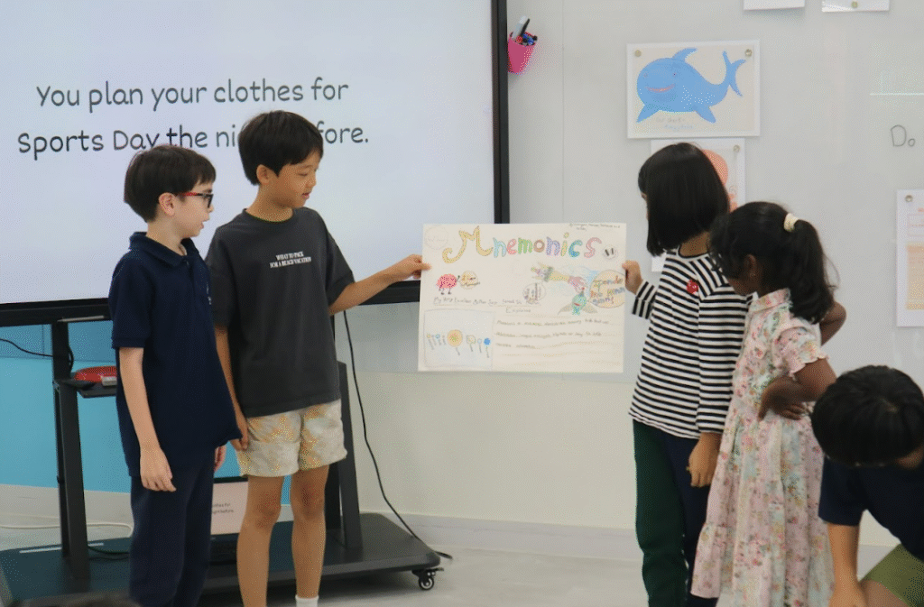 In IPC this week, we continued to explore how our brains work and how we can become better learners. The children examined the idea of growth mindset versus fixed mindset by looking at inspiring examples of famous people who overcame great challenges to succeed. We also learned about the amygdala, which we compared to a shark — it can protect us by keeping us alert, but it sometimes confuses real danger with moments that simply make us feel a little nervous. The class then explored the difference between skills, knowledge and understanding, recognising that learning takes many different forms. We also discovered the role of the prefrontal cortex, which we likened to an octopus because it helps us make thoughtful decisions. To finish, the children proudly presented their posters on different memory techniques, teaching each other strategies to use in their own learning.