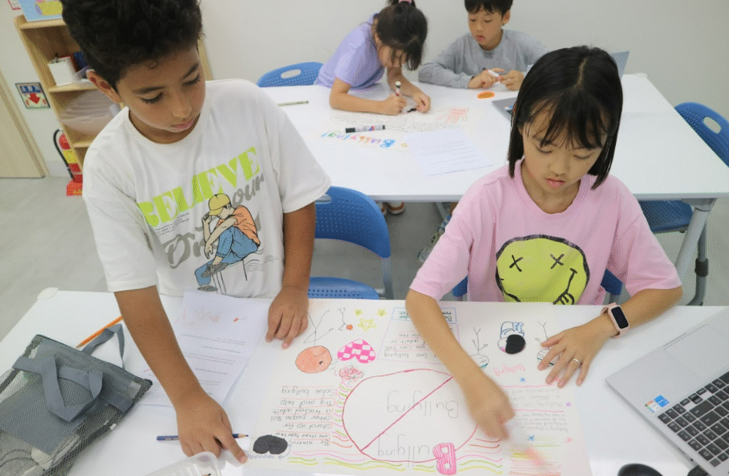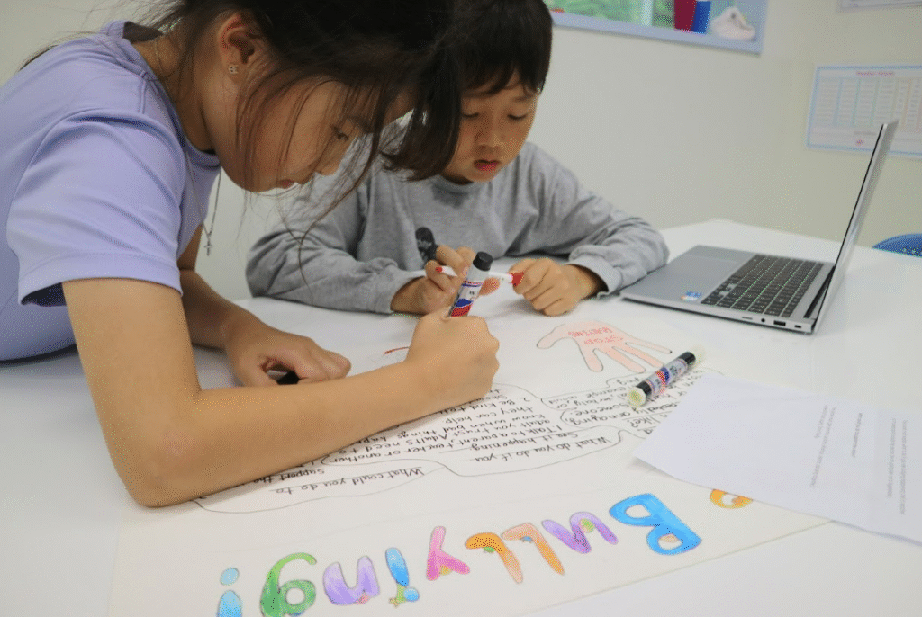 We then moved on to a very important discussion about bullying and why it is so important to speak up if you see it happening. The children created thoughtful and eye-catching posters to teach others in the school what to do if they witness bullying. These posters are now proudly displayed outside our classroom so that they can help spread the message of standing up for others and keeping our school community safe and kind.