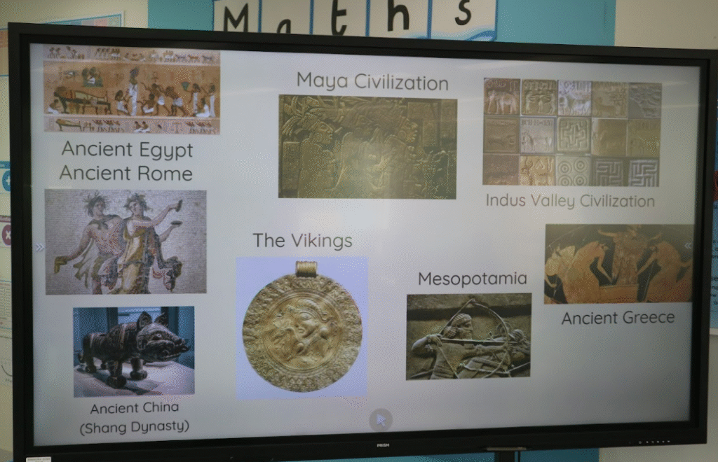 For our entry point and knowledge harvest, we focused on three fascinating civilizations: the Ancient Romans, the Ancient Greeks, and the Vikings. To start, the students took part in a scavenger hunt, matching clues such as “They built great temples”, “They sailed across the seas raiding new lands”, or “They held the first Olympic Games” to the correct civilization.