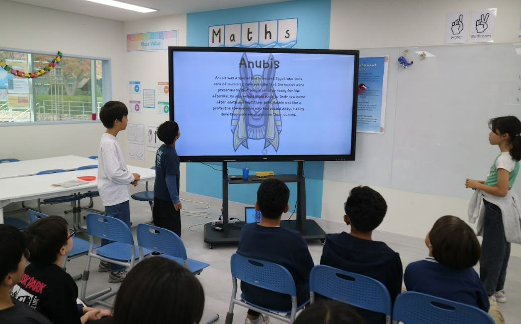 Later in the week, we began exploring Ancient Egyptian beliefs and gods. The students were put into groups, each tasked with researching a different Egyptian god. They created informative and colourful presentations to share their findings with the class. Two groups presented this week and did a fantastic job explaining who their god was, what they represented, and why they were so important to Ancient Egyptian life. The remaining groups will share their presentations next week — and I’m sure they will wow us with their knowledge and creativity!