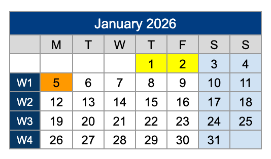 • First day of Term 2 – Monday 5th January
