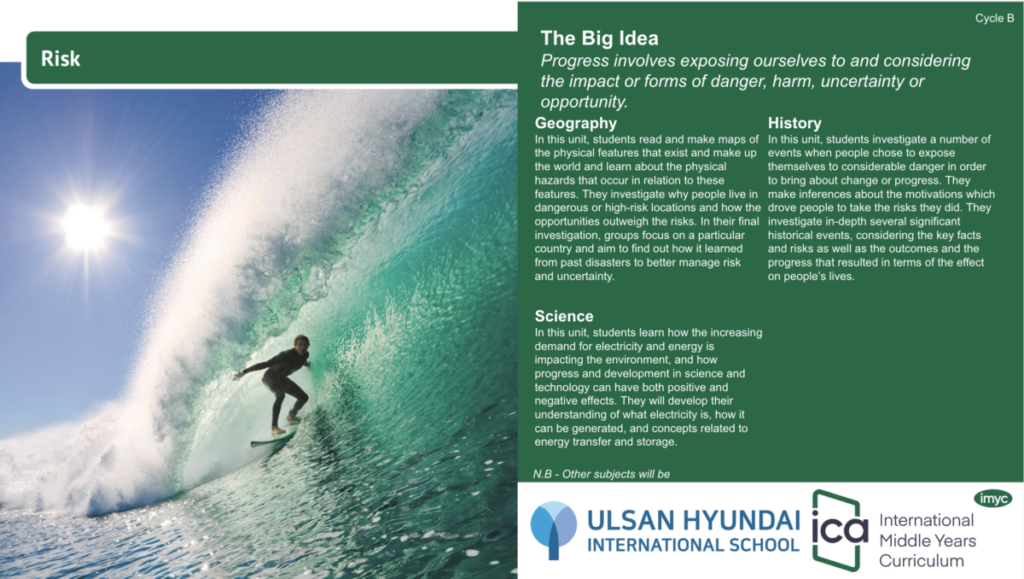In the IMYC, our middle school students begin the thought-provoking unit Risk. Through geography, history and science, they will explore how progress often involves uncertainty, challenge and opportunity, developing both subject knowledge and deeper international-mindedness.